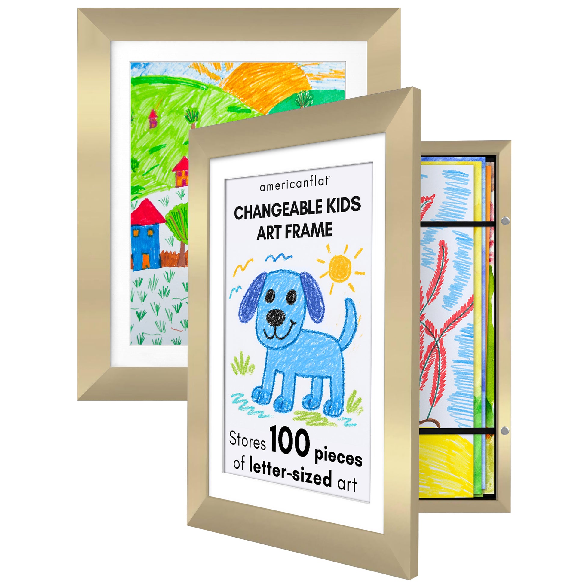 Kids Artwork Frame Changeable (Gold) | Magnetic Door Holds 100 Art Pieces | 8.5x11 Letter Size Display with Mat or 10x12.5 Without Mat | My Mini Masterpiece (Set of 2)