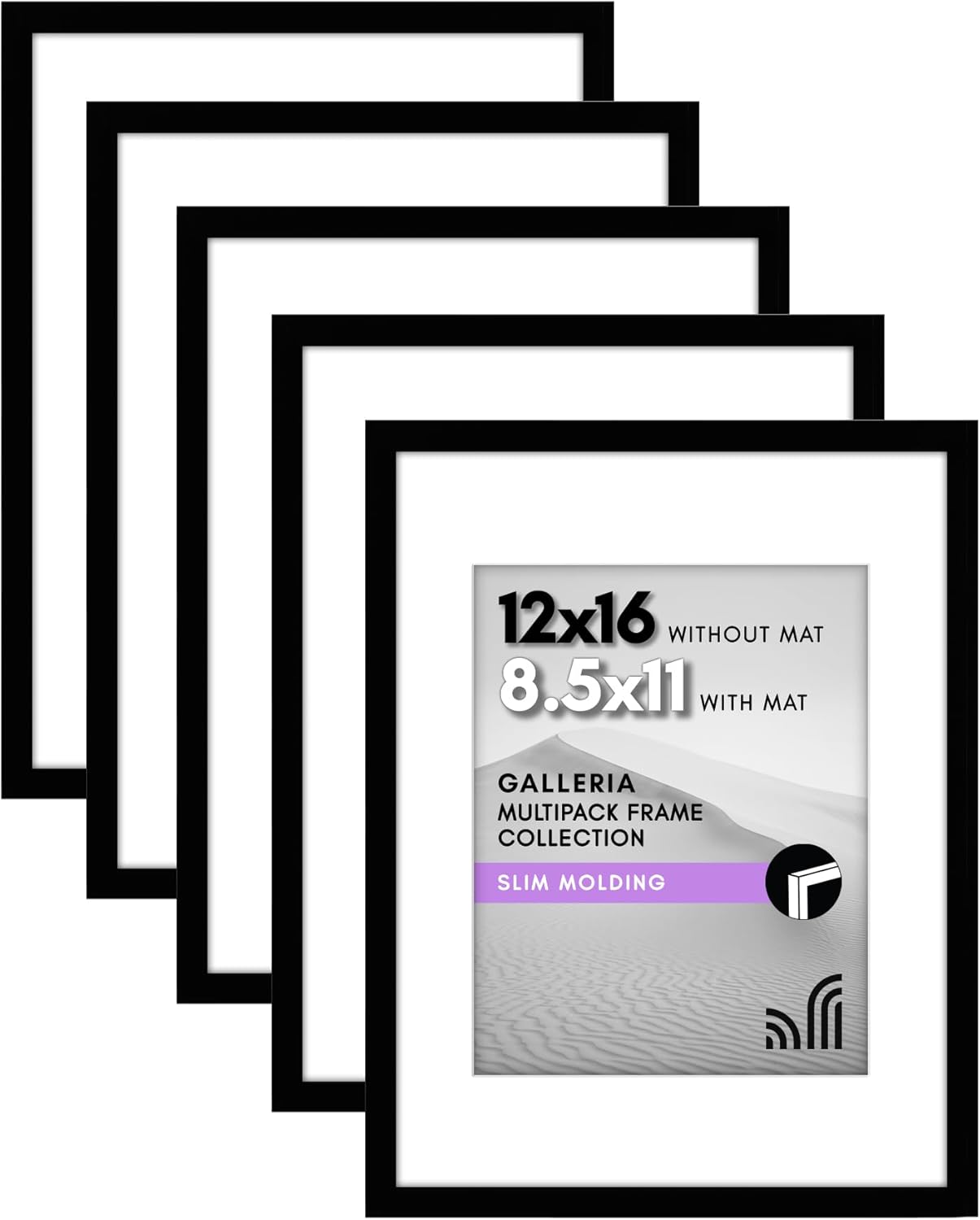 Americanflat | 12x16 Picture Frame with Polished Plexiglass | Set of 5 | Use as 8.5x11 Frame with Mat or Display 12x16 Photo Without Mat | Galleria Collection | Picture Frames for Wall Display | Black