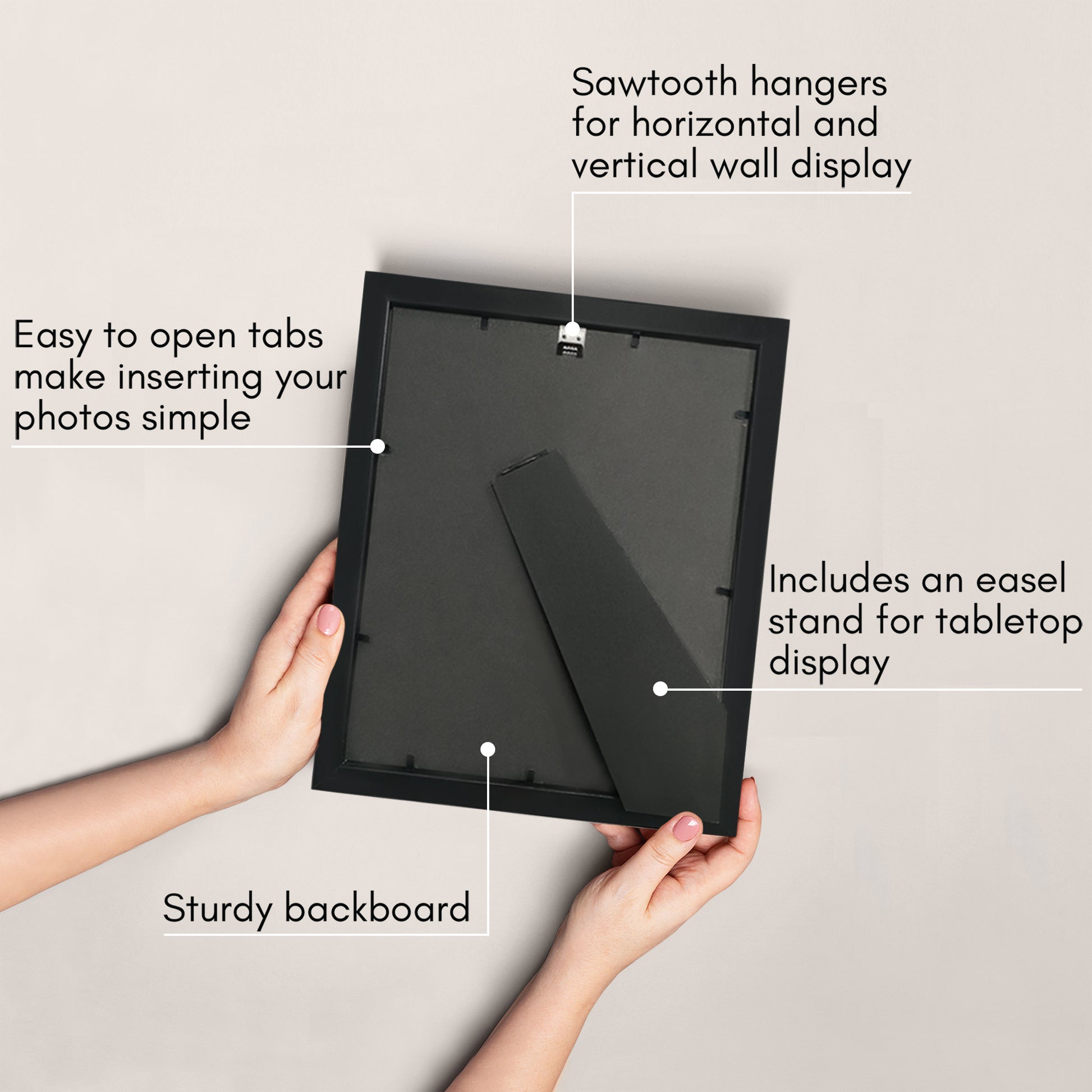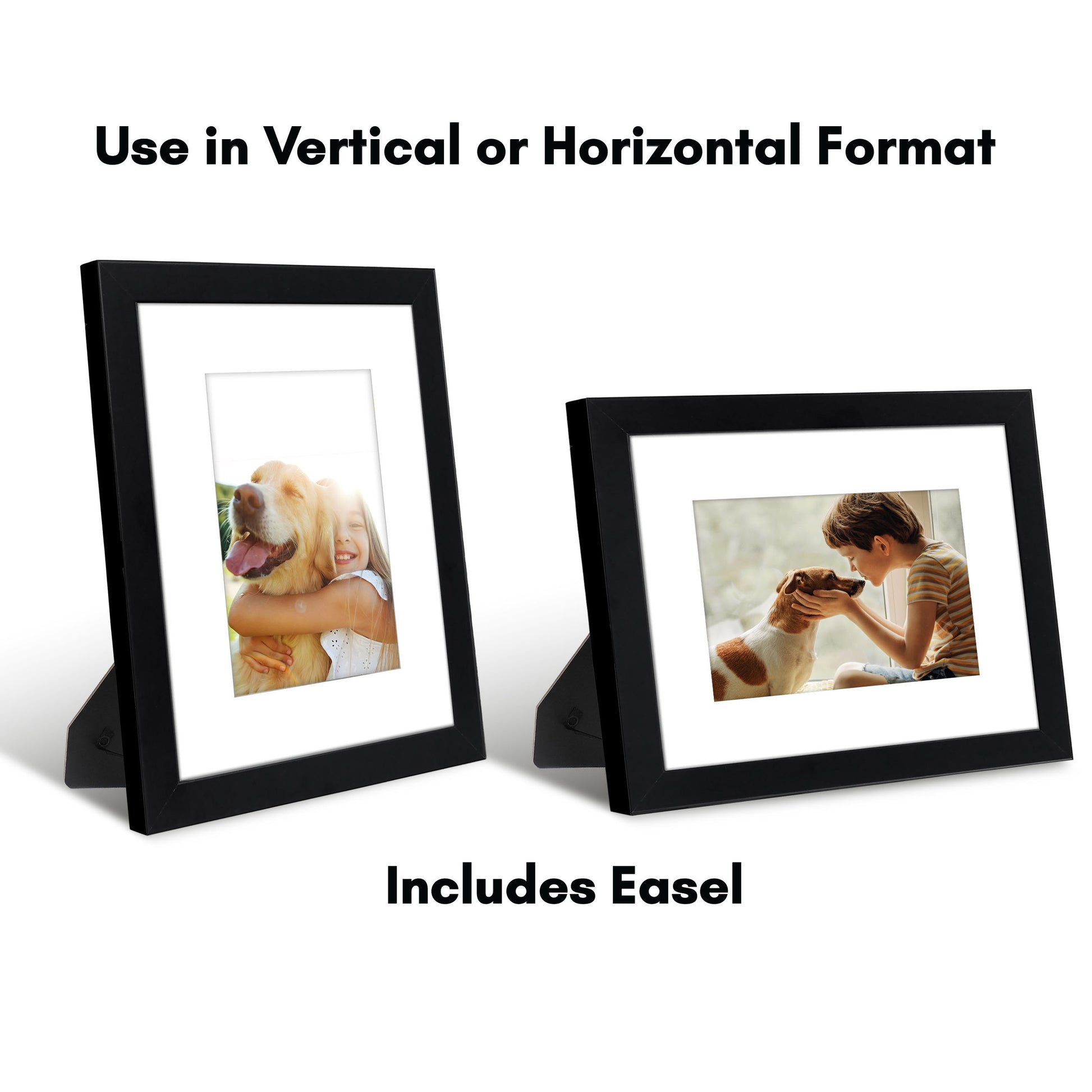 Americanflat | 8x10 | Picture Frame with Shatter-Resistant Glass | Set of 4 | Use as 5x7 Frame with Mat or Display 8x10 Photo Without Mat | Signature Collection | Photo Frames for Tabletop or Wall | Black