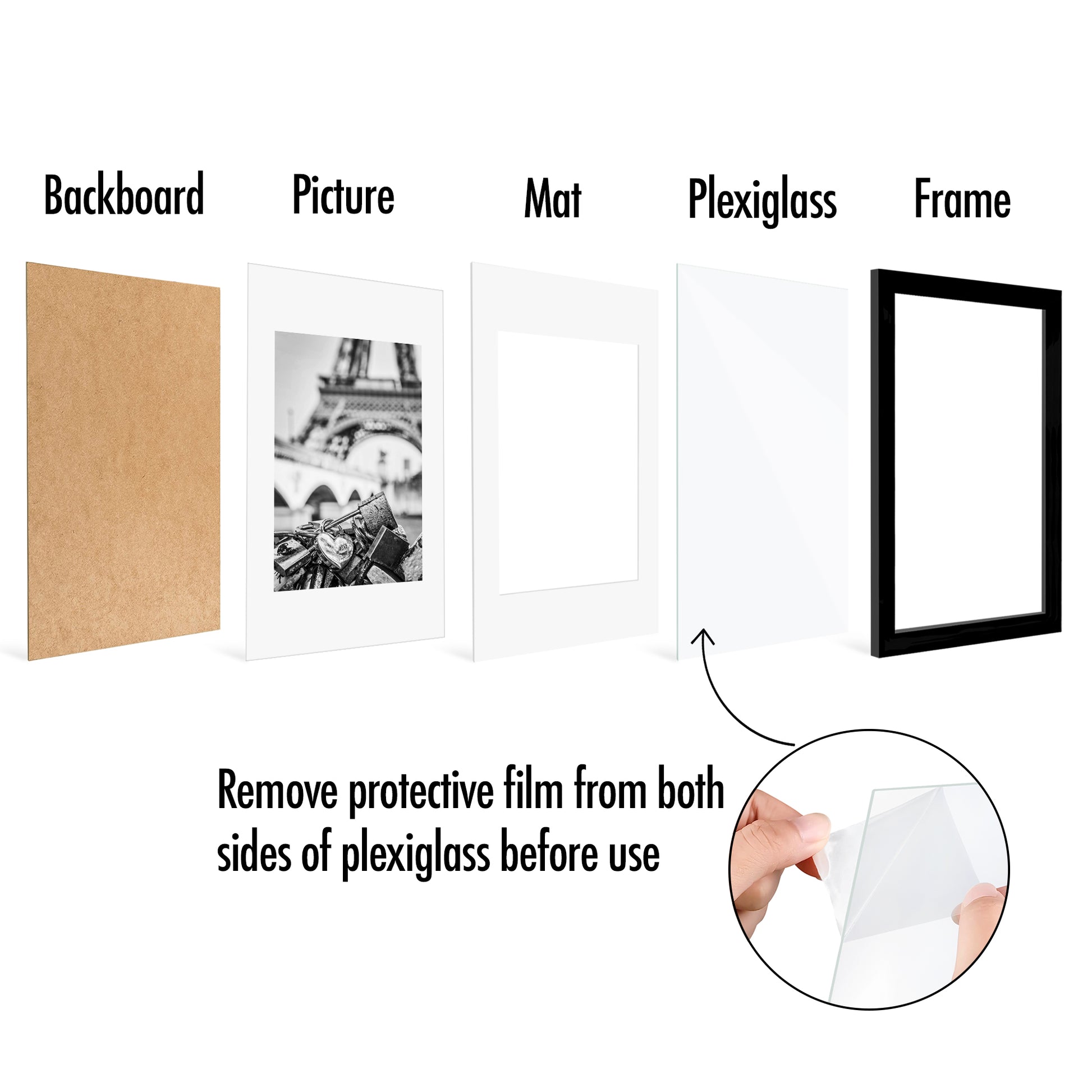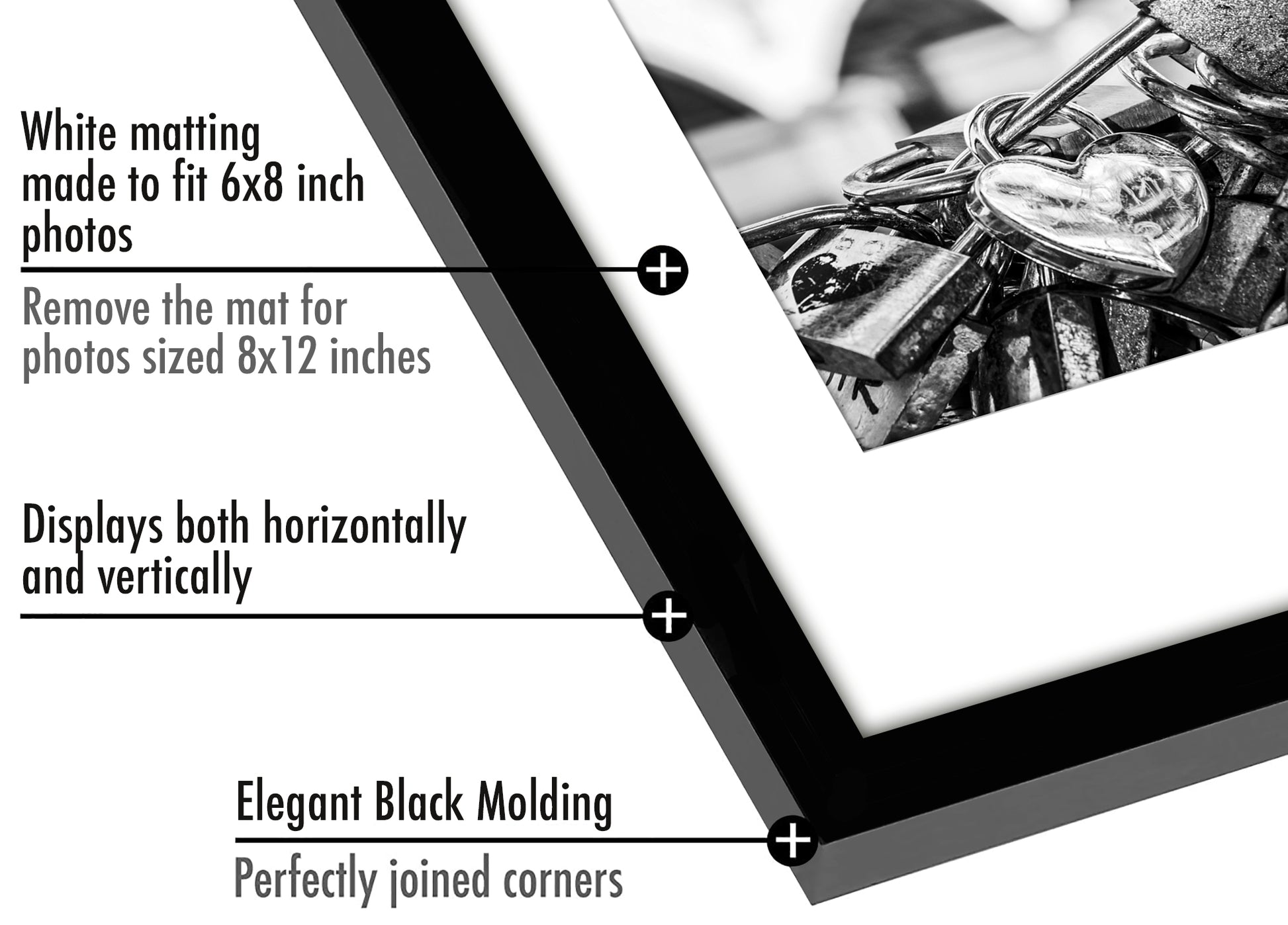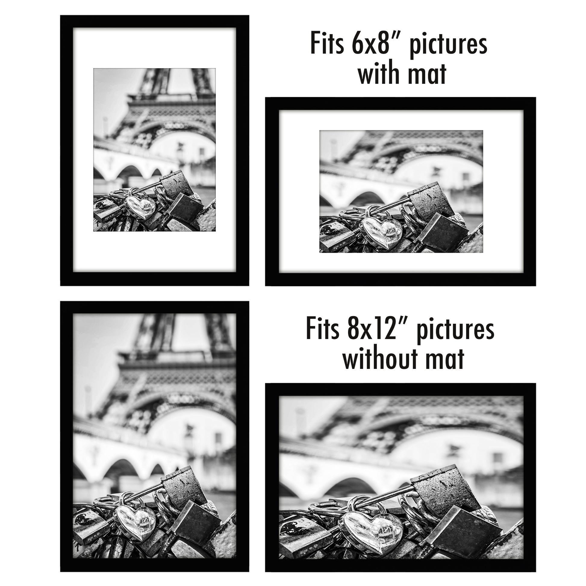 Americanflat | 8x12 | Picture Frame with Polished Plexiglass | Set of 5 | Use as 6x8 Frame with Mat or Display 8x12 Photo Without Mat | Galleria Collection | Picture Frames for Wall Display | Black