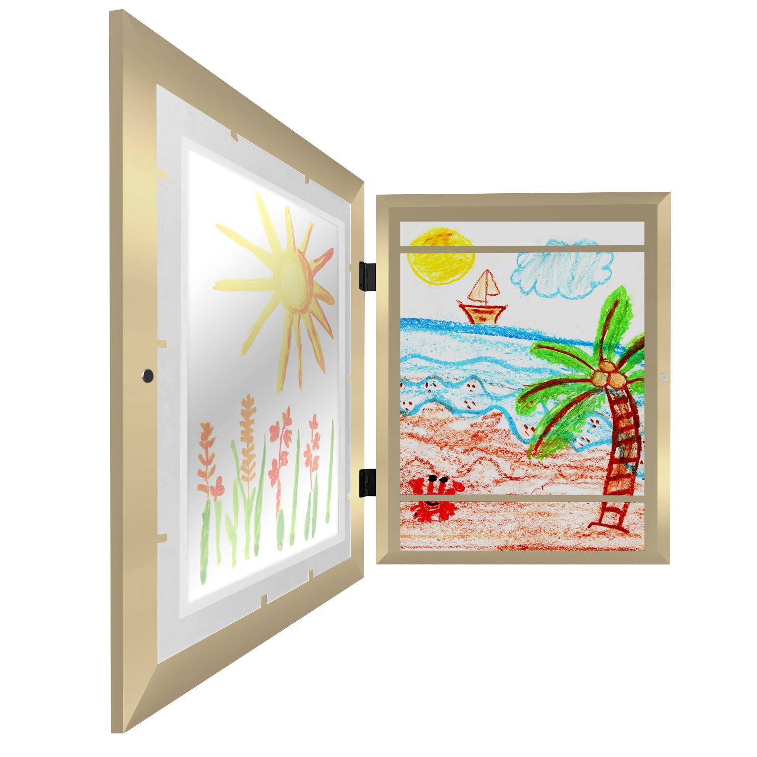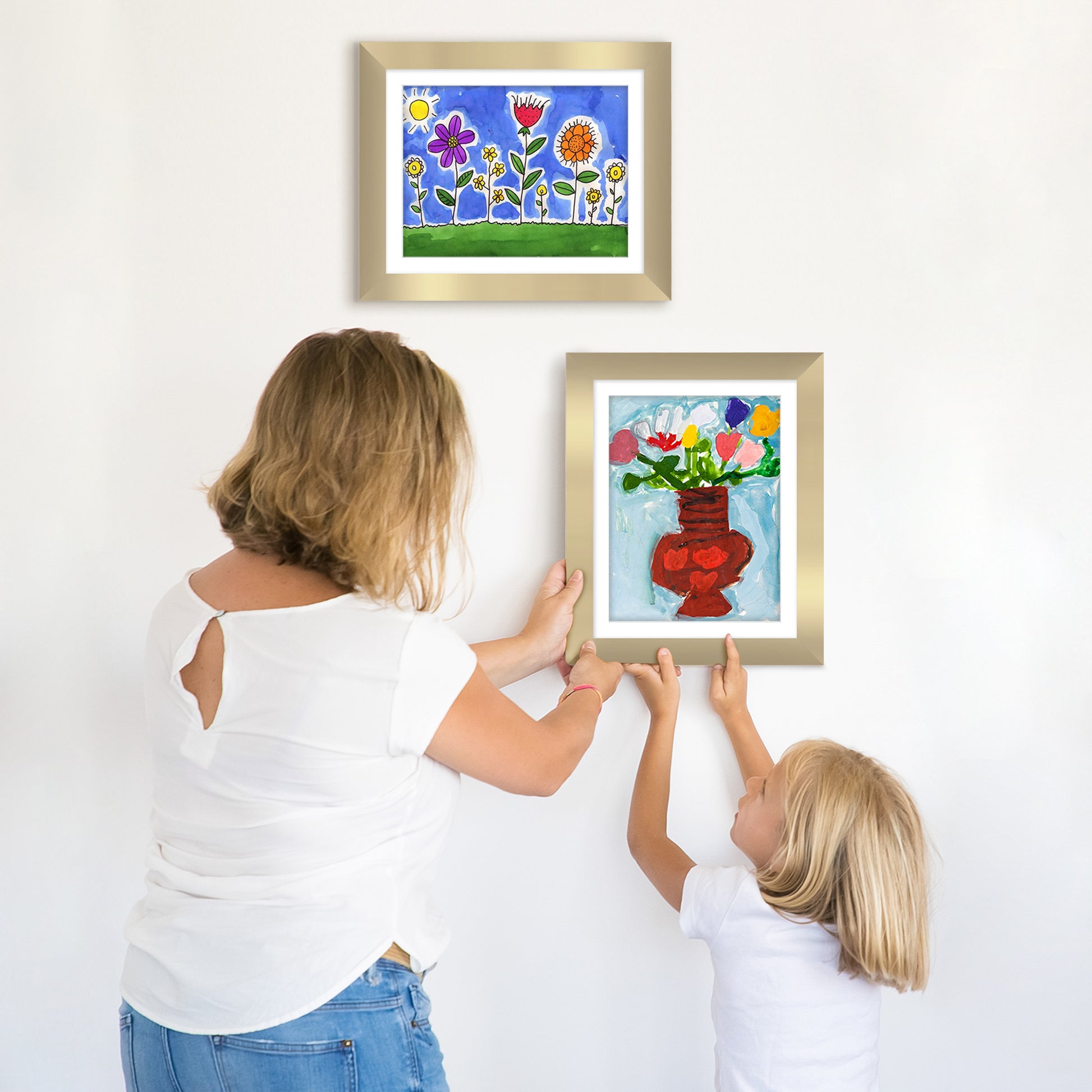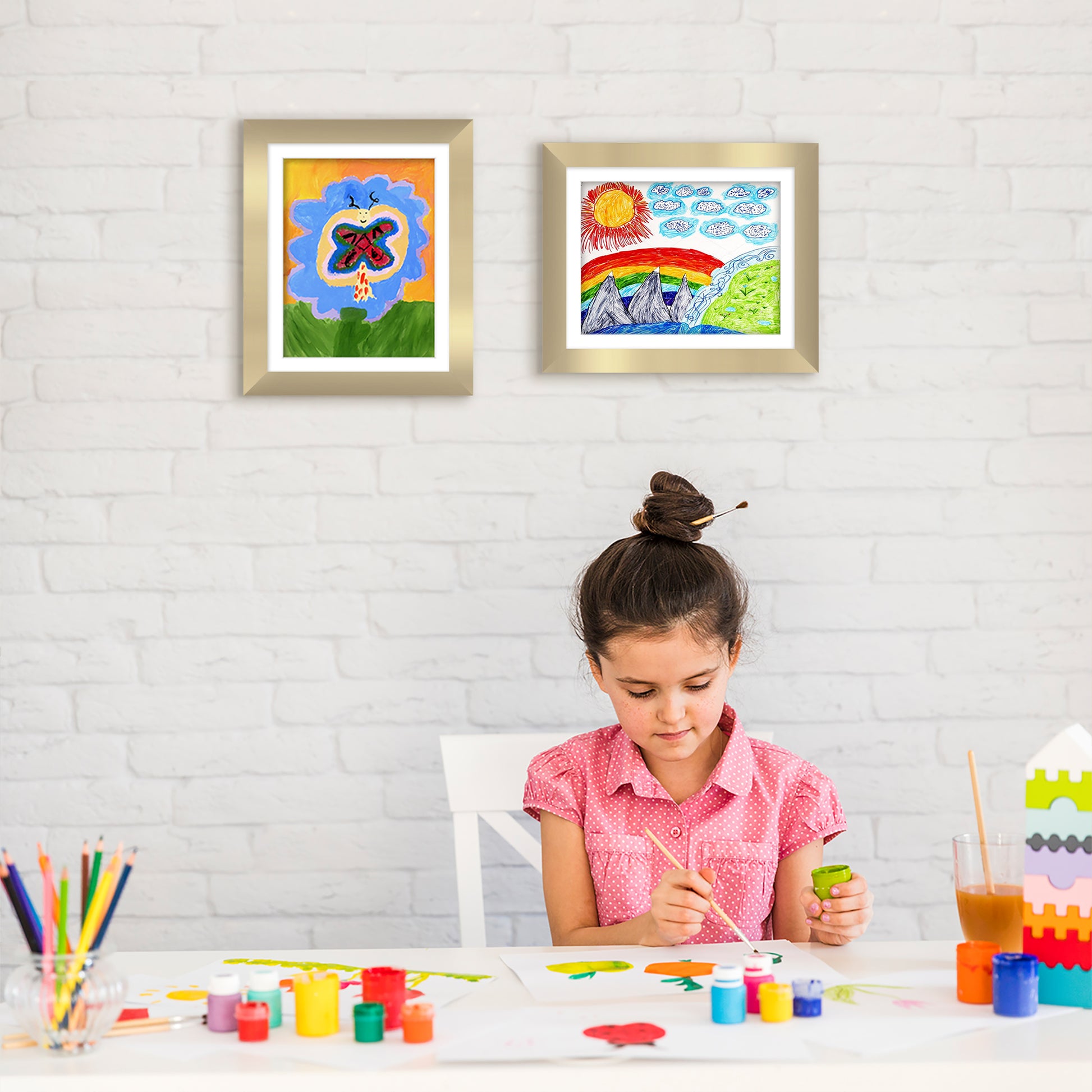 Kids Artwork Frame Changeable (Gold) | Magnetic Door Holds 100 Art Pieces | 8.5x11 Letter Size Display with Mat or 10x12.5 Without Mat | My Mini Masterpiece (Set of 2)