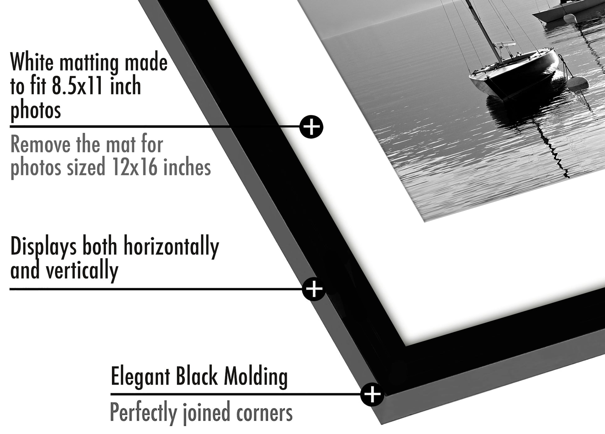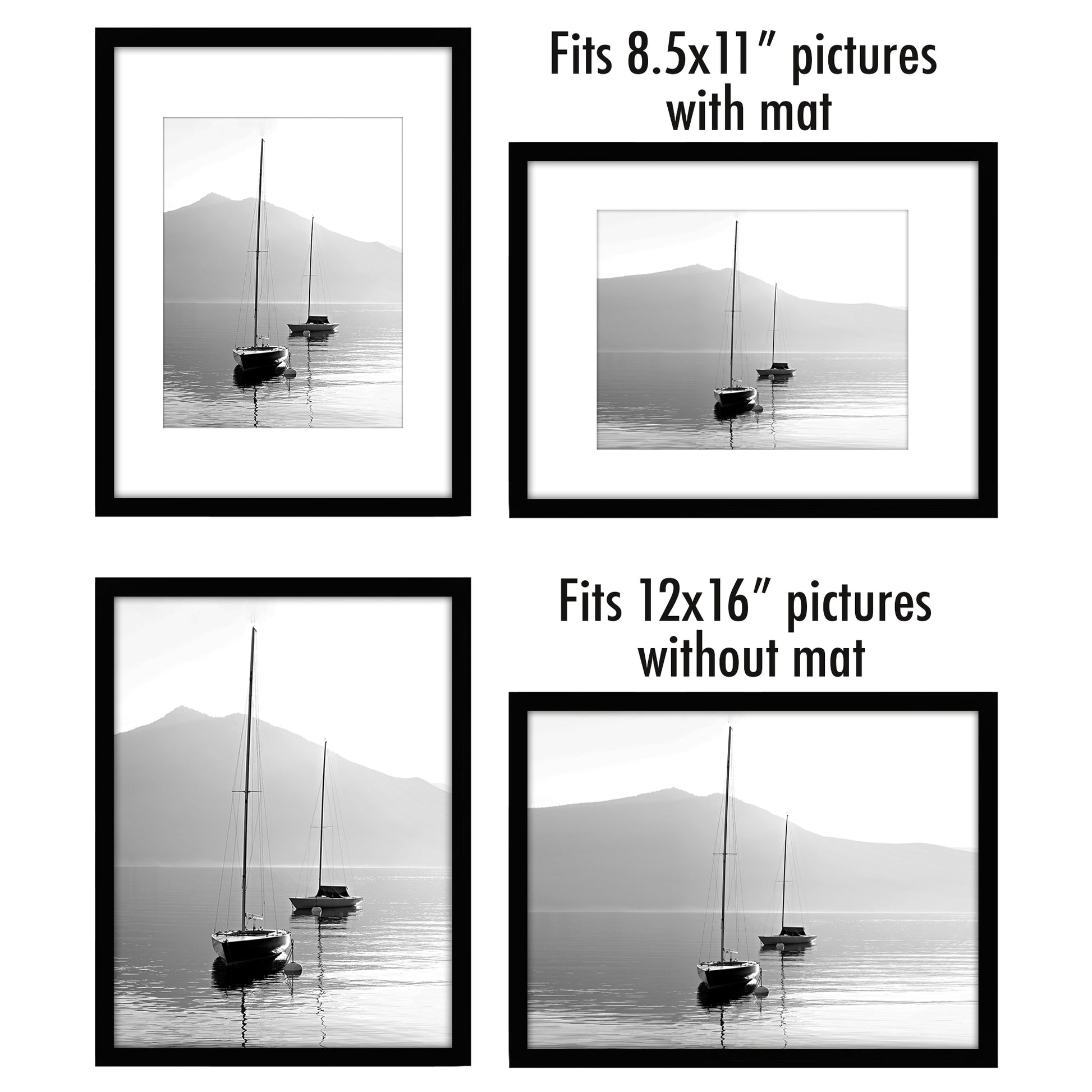 Americanflat | 12x16 Picture Frame with Polished Plexiglass - Set of 5 | Use as 8.5x11 Frame with Mat or Display 12x16 Photo Without Mat | Galleria Collection | Picture Frames for Wall Display | Black