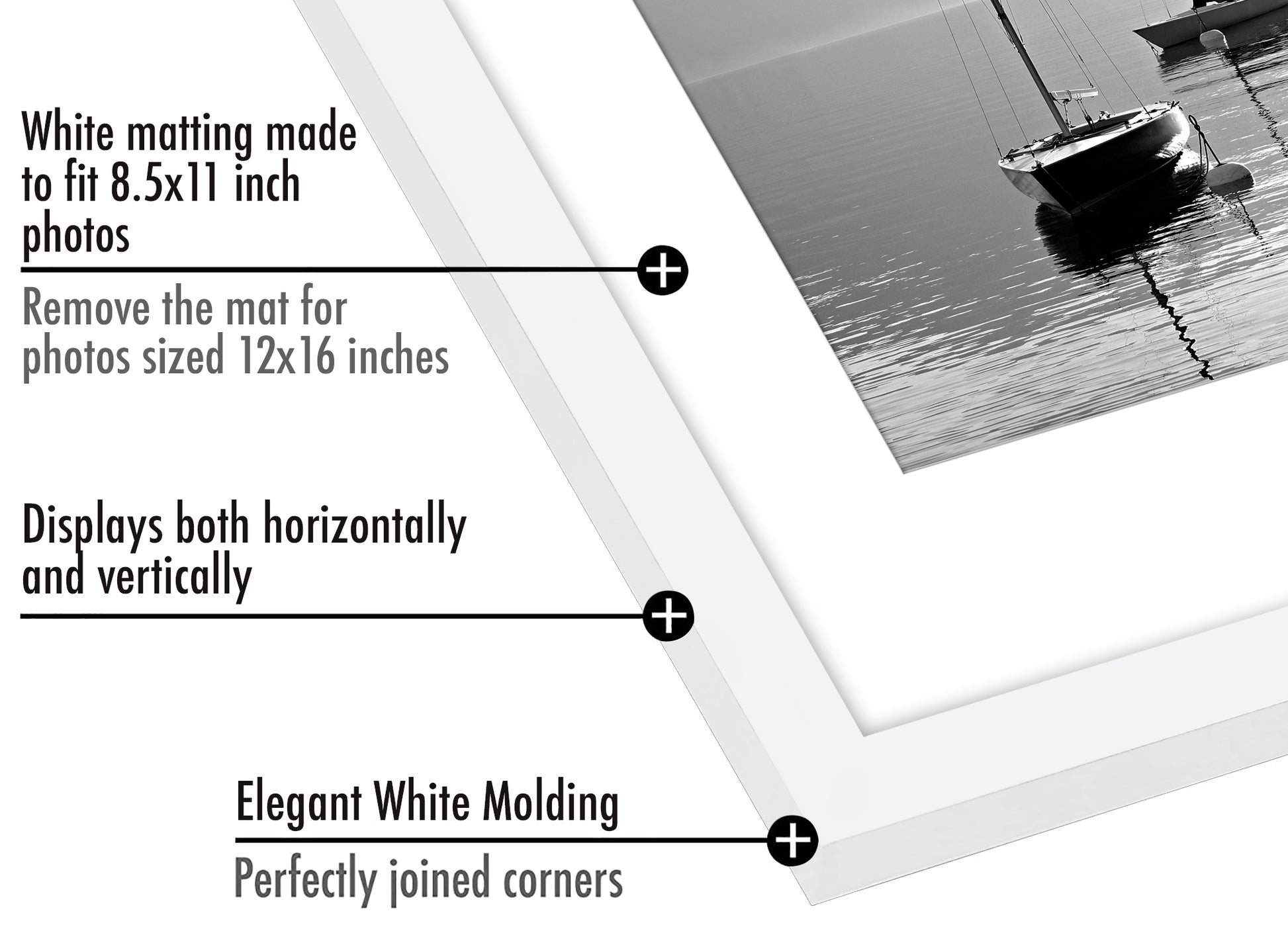 Americanflat | 12x16 Picture Frame with Polished Plexiglass | Set of 5 | Use as 8.5x11 Frame with Mat or Display 12x16 Photo Without Mat | Galleria Collection | Picture Frames for Wall Display | White