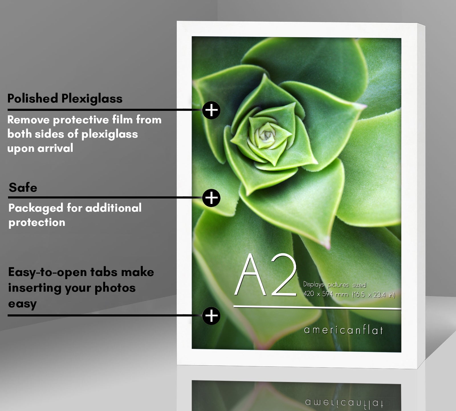 Americanflat | A2 Picture Frame with Polished Plexiglass | 16.5x23.4 Frame with Engineered Wood | Signature Collection | A2 Frames for Wall Display | White