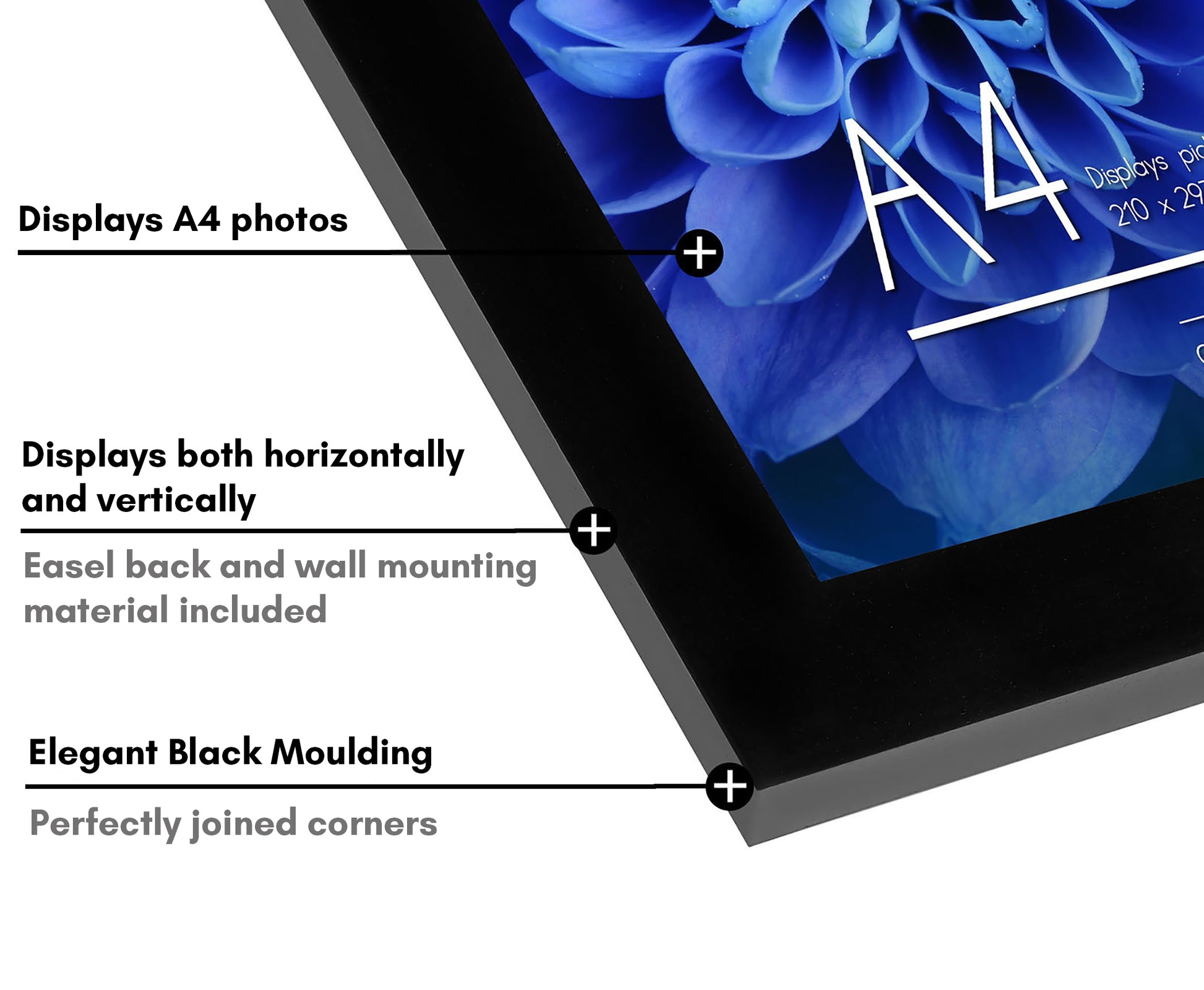 Americanflat | A4 Picture Frame with Shatter-Resistant Glass | Set of 2 - 8.3x11.7 Frame with Engineered Wood | Signature Collection | A4 Frames for Tabletop and Wall Display | Black