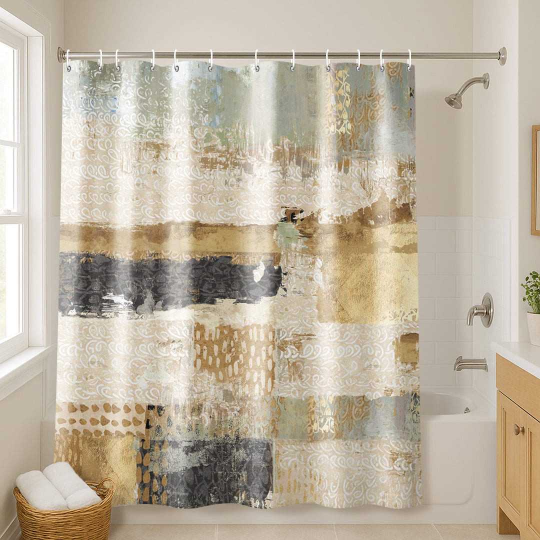 71x74 Abstract Shower Curtain with 12 Metal Grommets | Horizontal Distressed Textures