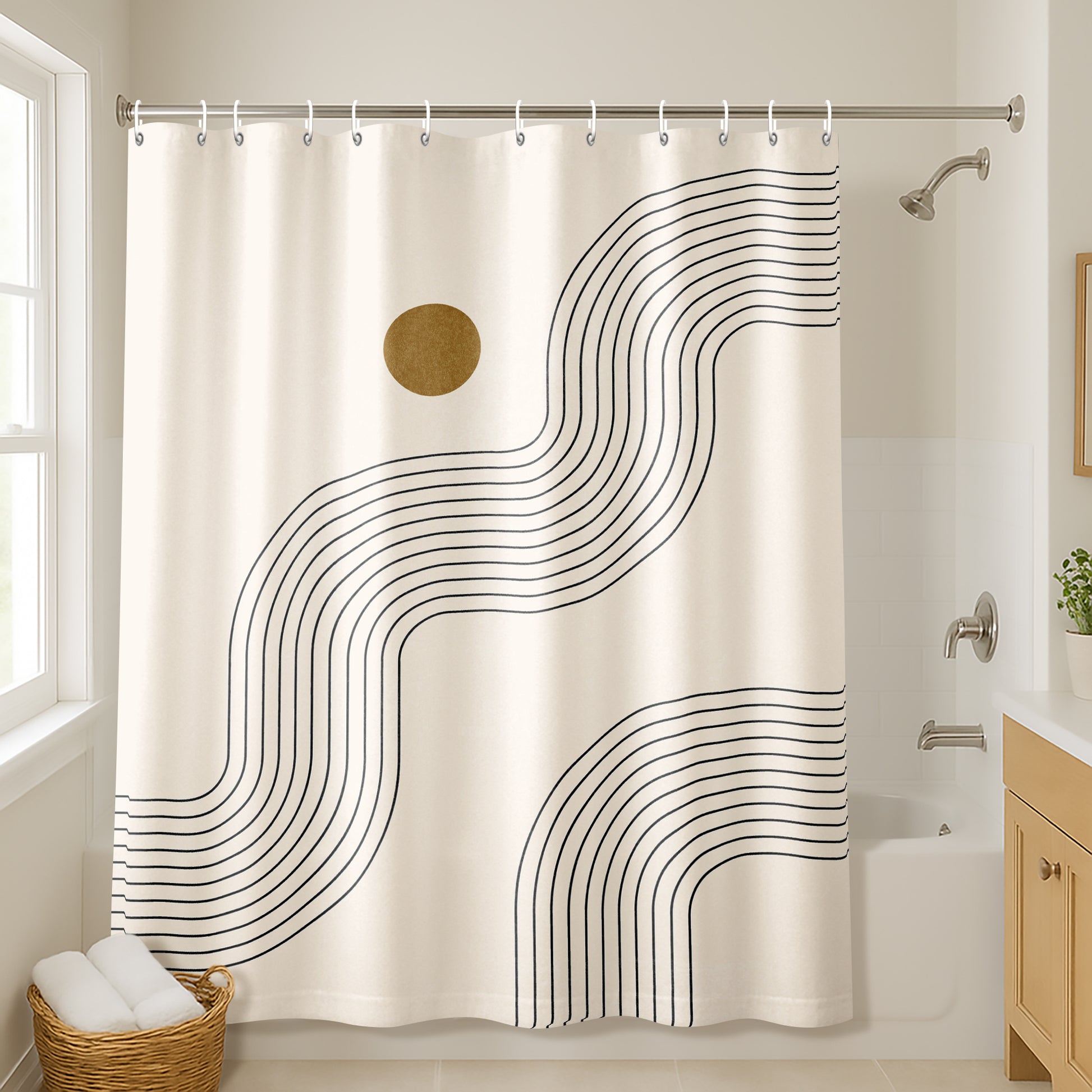 71x74 Abstract Shower Curtain with 12 Metal Grommets | Geometric Lines