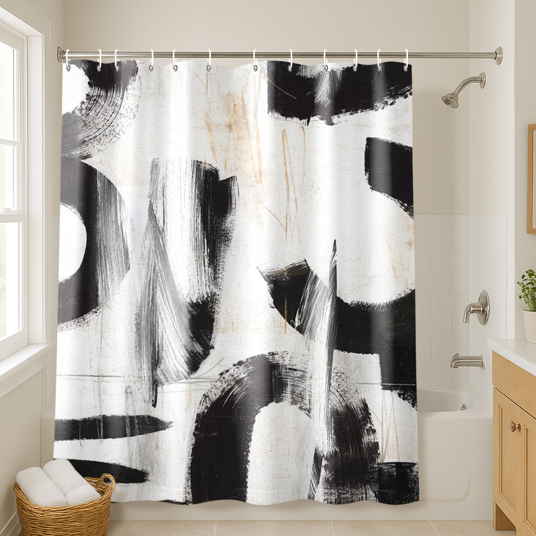 71x74 Abstract Shower Curtain with 12 Metal Grommets | Monochrome
