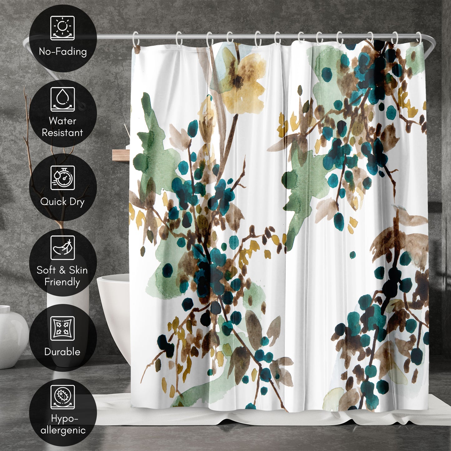 71x74 Abstract Shower Curtain with 12 Metal Grommets | Watercolor Blueberry
