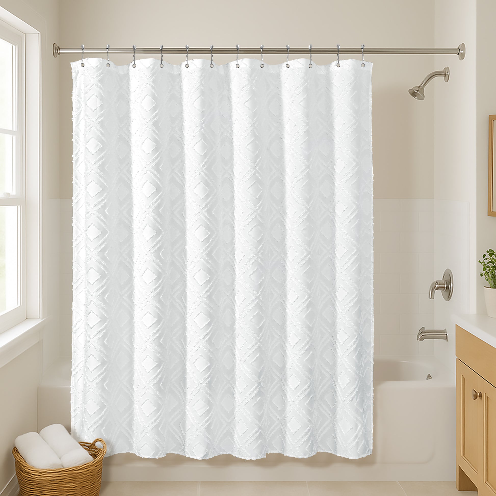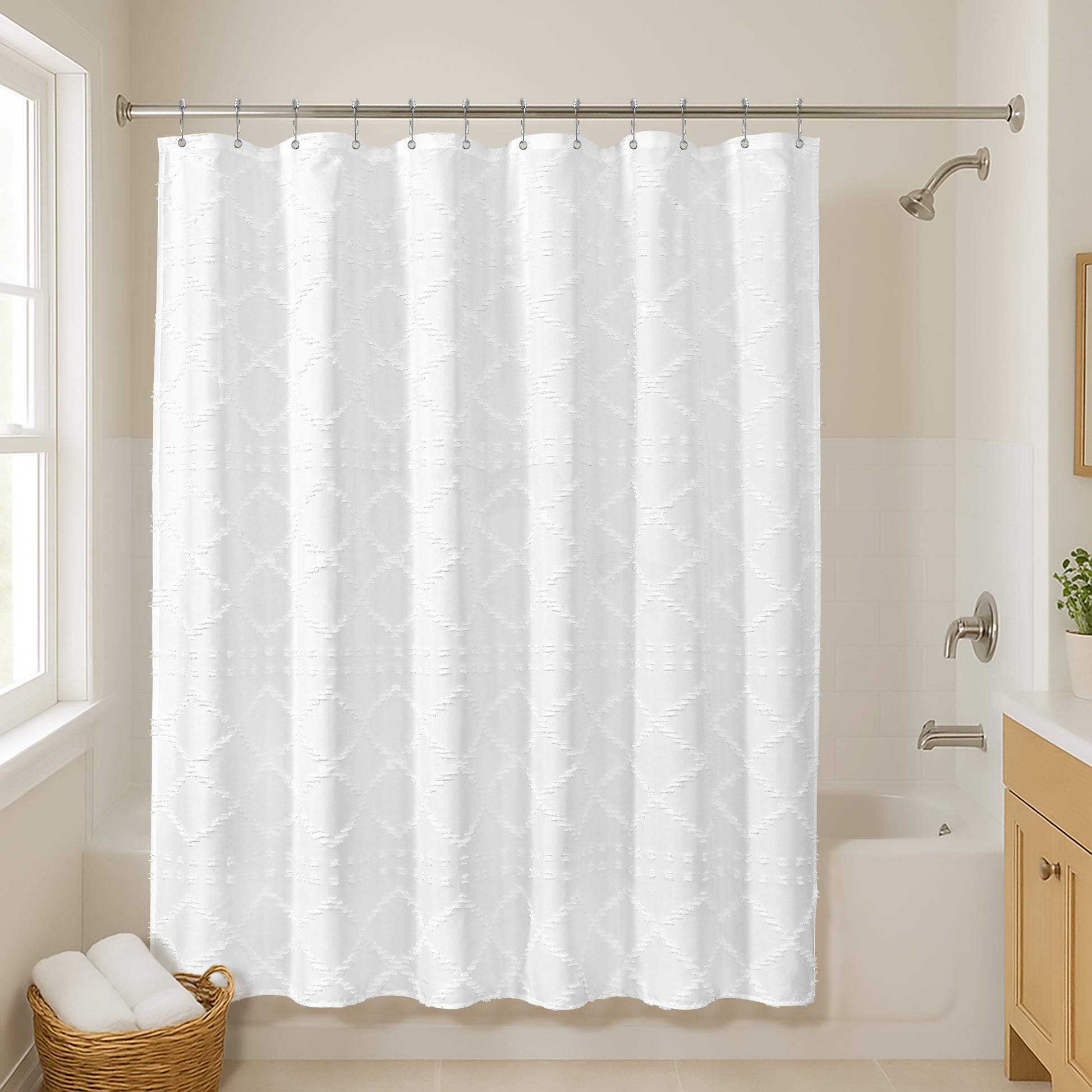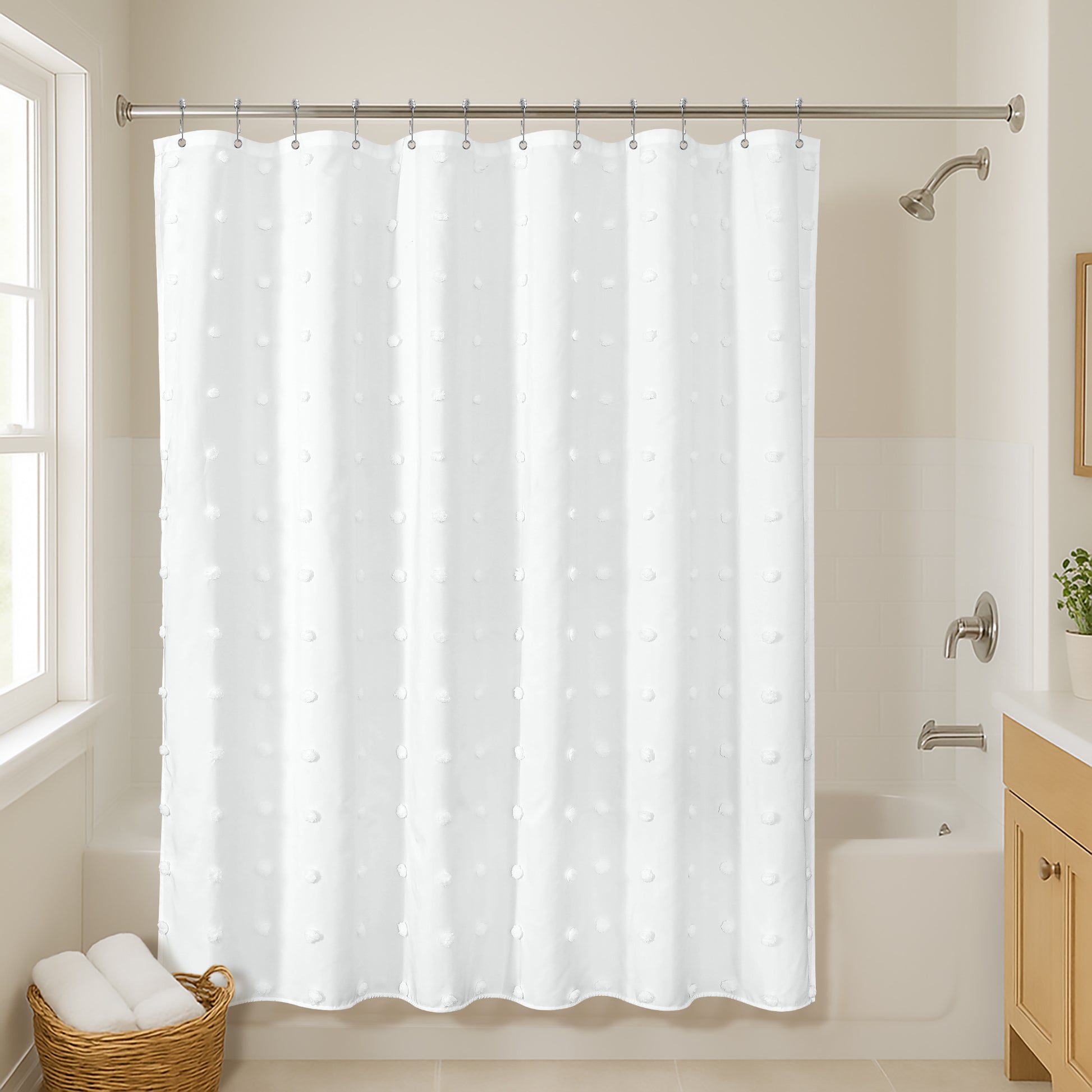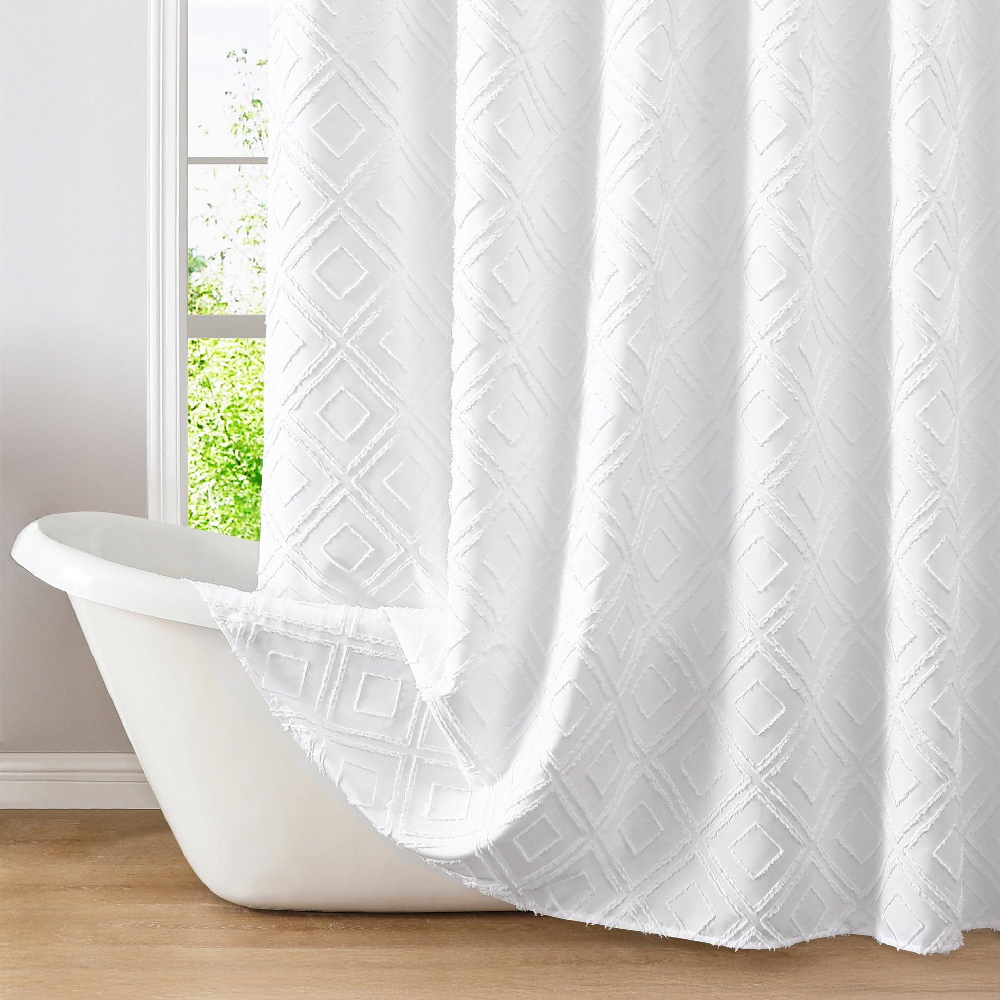 71x71 Woven Linen Shower Curtain with Tassel Accents and 12 Grommets | Textured Designs