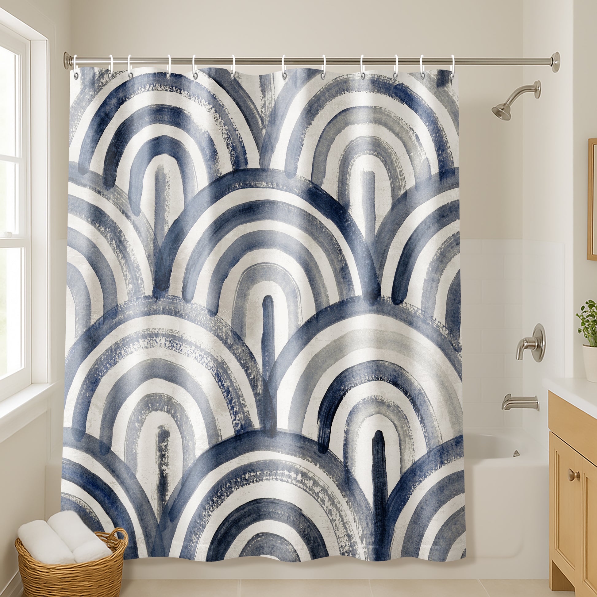 71x74 Abstract Shower Curtain with 12 Metal Grommets | Modern Artistic Design