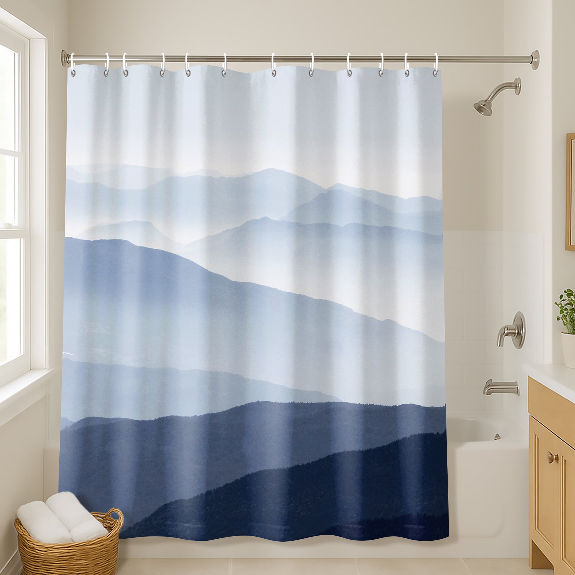 71x74 Blue Mountain Shower Curtain with 12 Metal Grommets