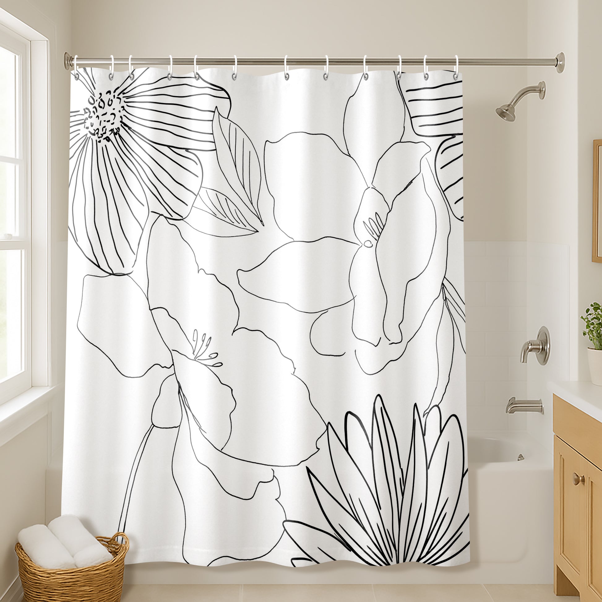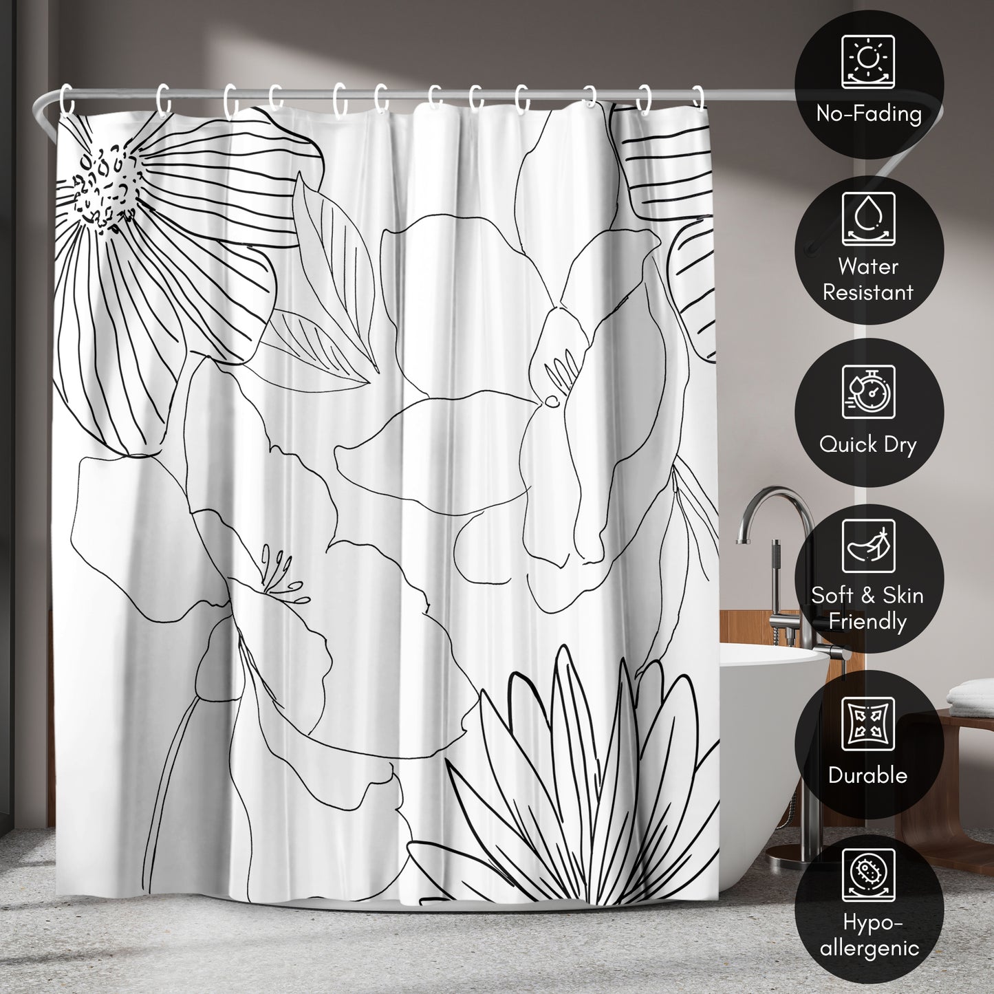 71x74 Shower Curtain with 12 Metal Grommets | Delicate Lines