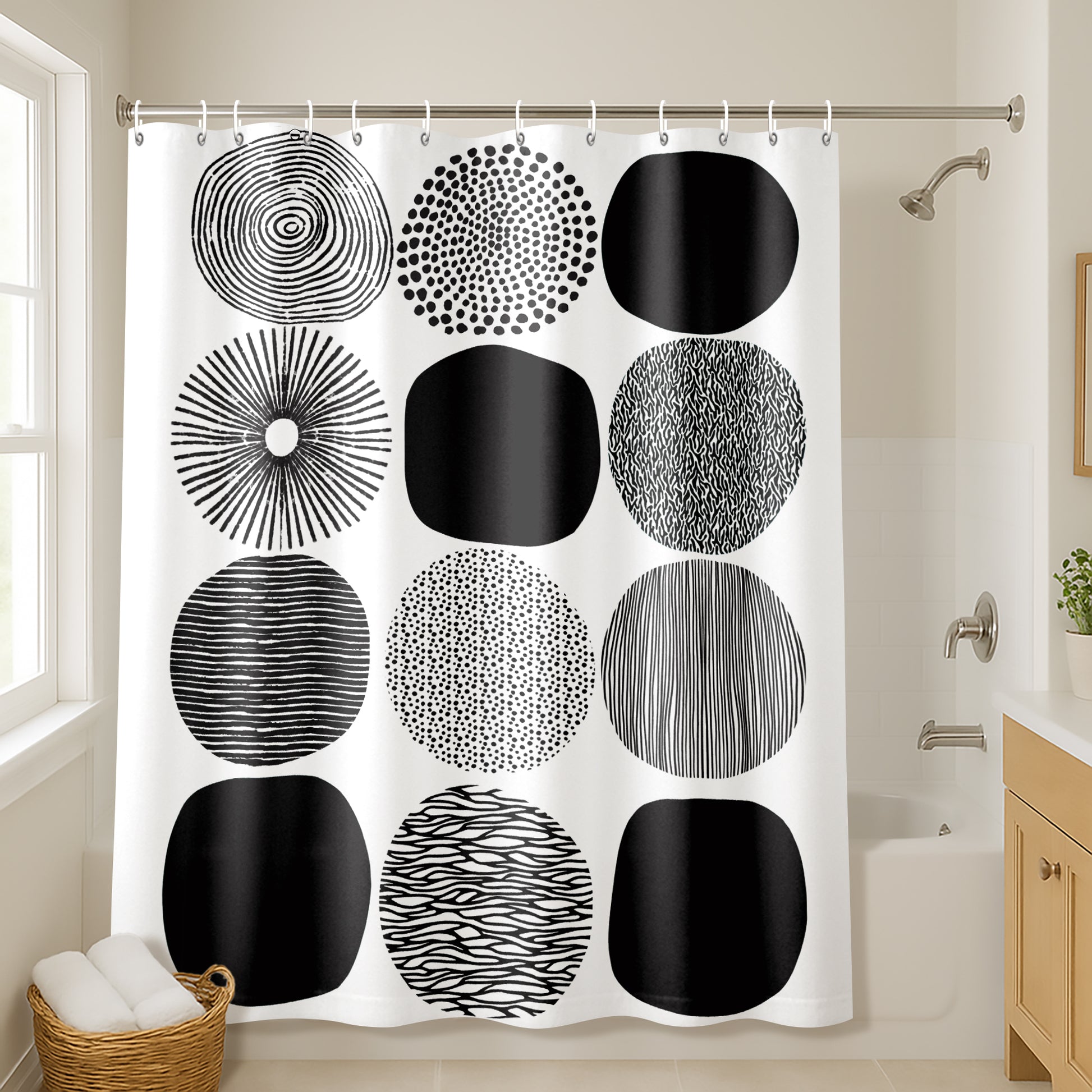 71x74 Abstract Shower Curtain with 12 Metal Grommets | Black Circles