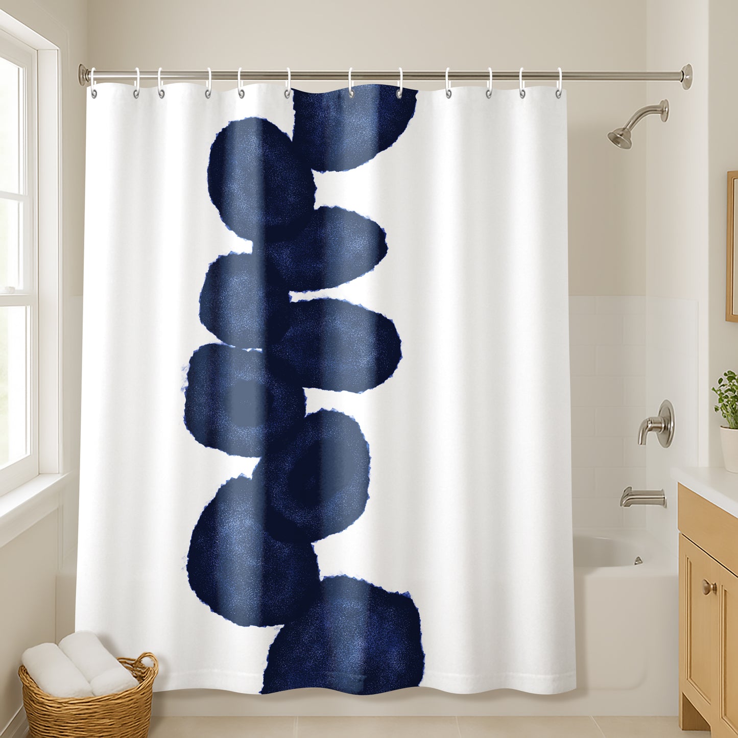 71x74 Shower Curtain with 12 Metal Grommets | Deep Navy and White