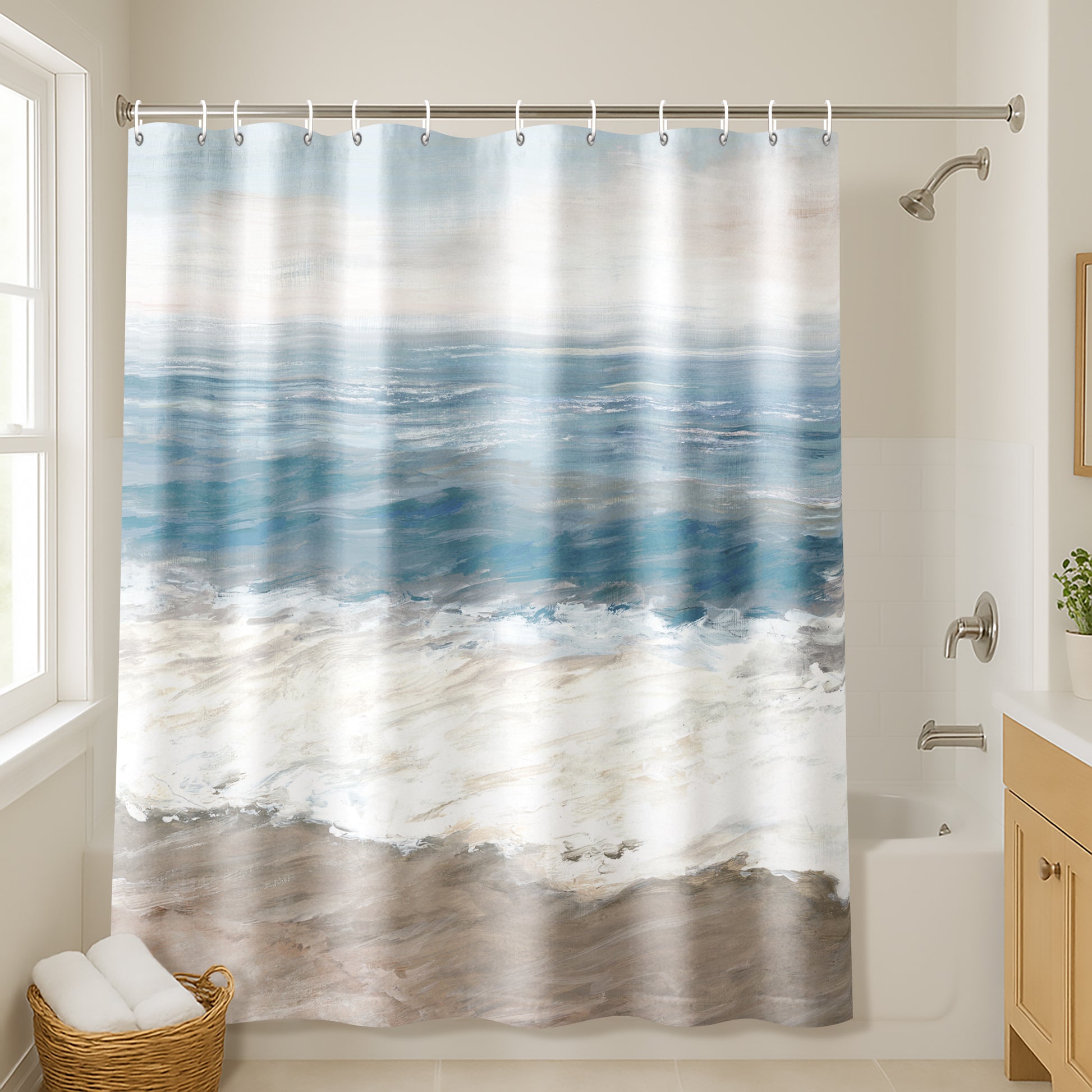 71x74 Abstract Shower Curtain with 12 Metal Grommets | Warm Waves