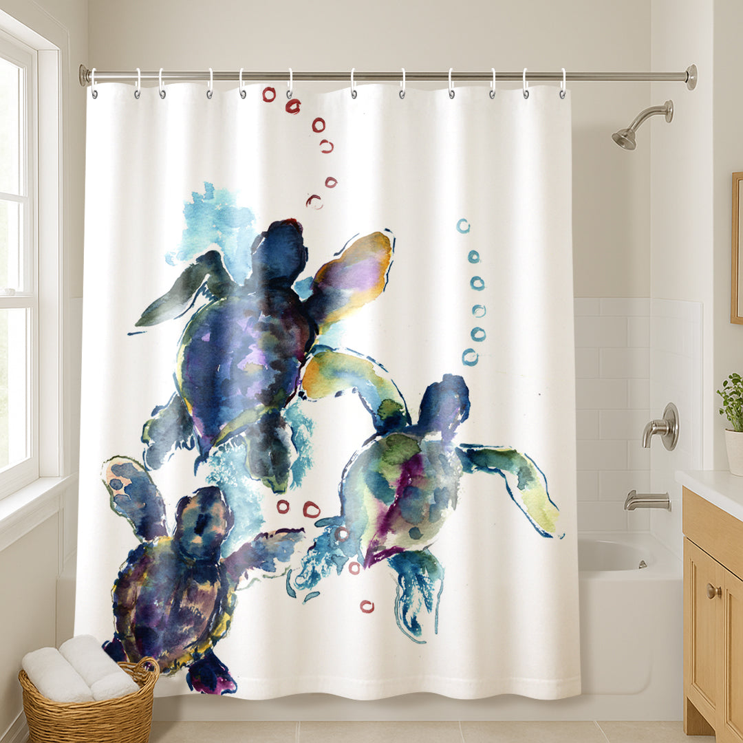 71x74 Sea Turtle Shower Curtain with 12 Metal Grommets