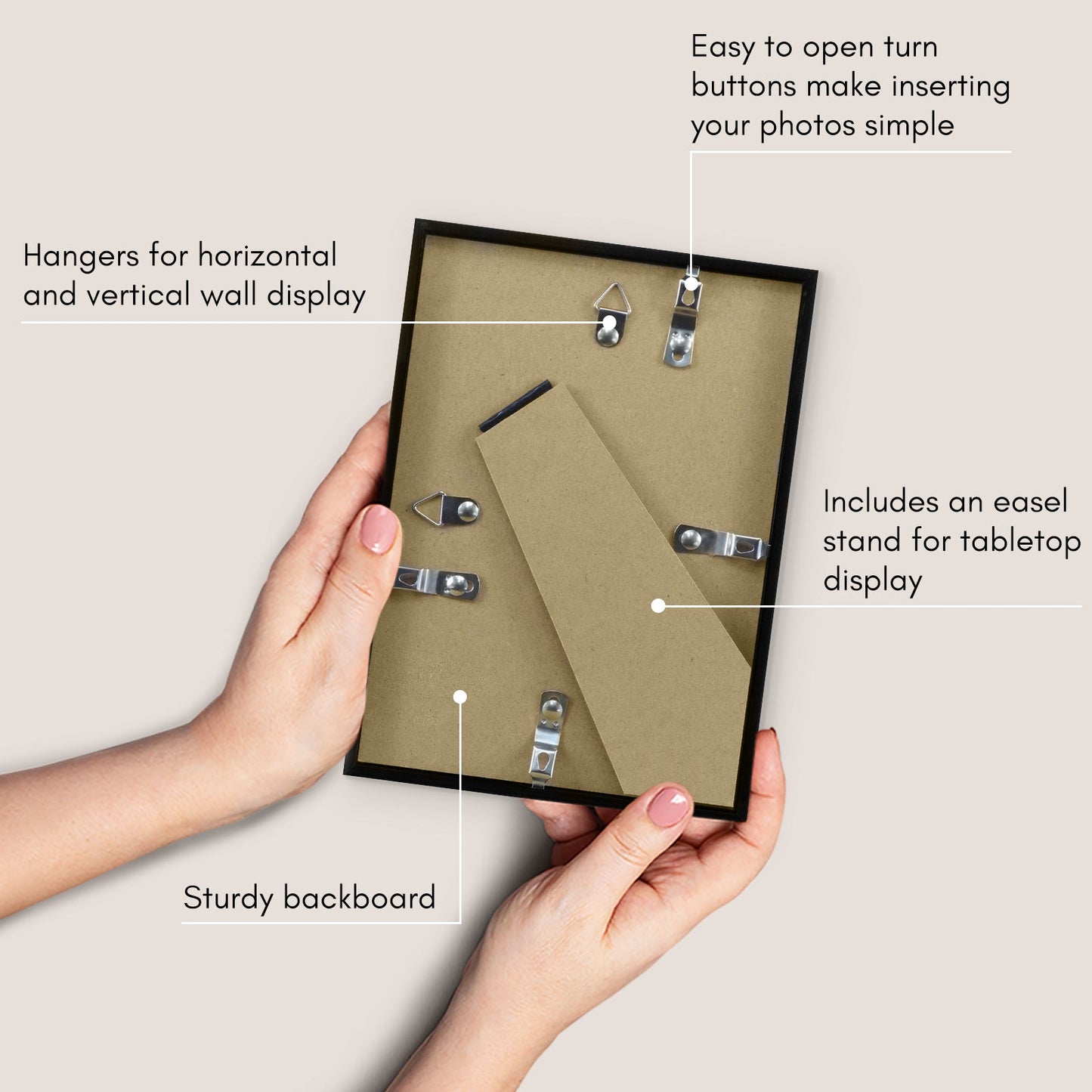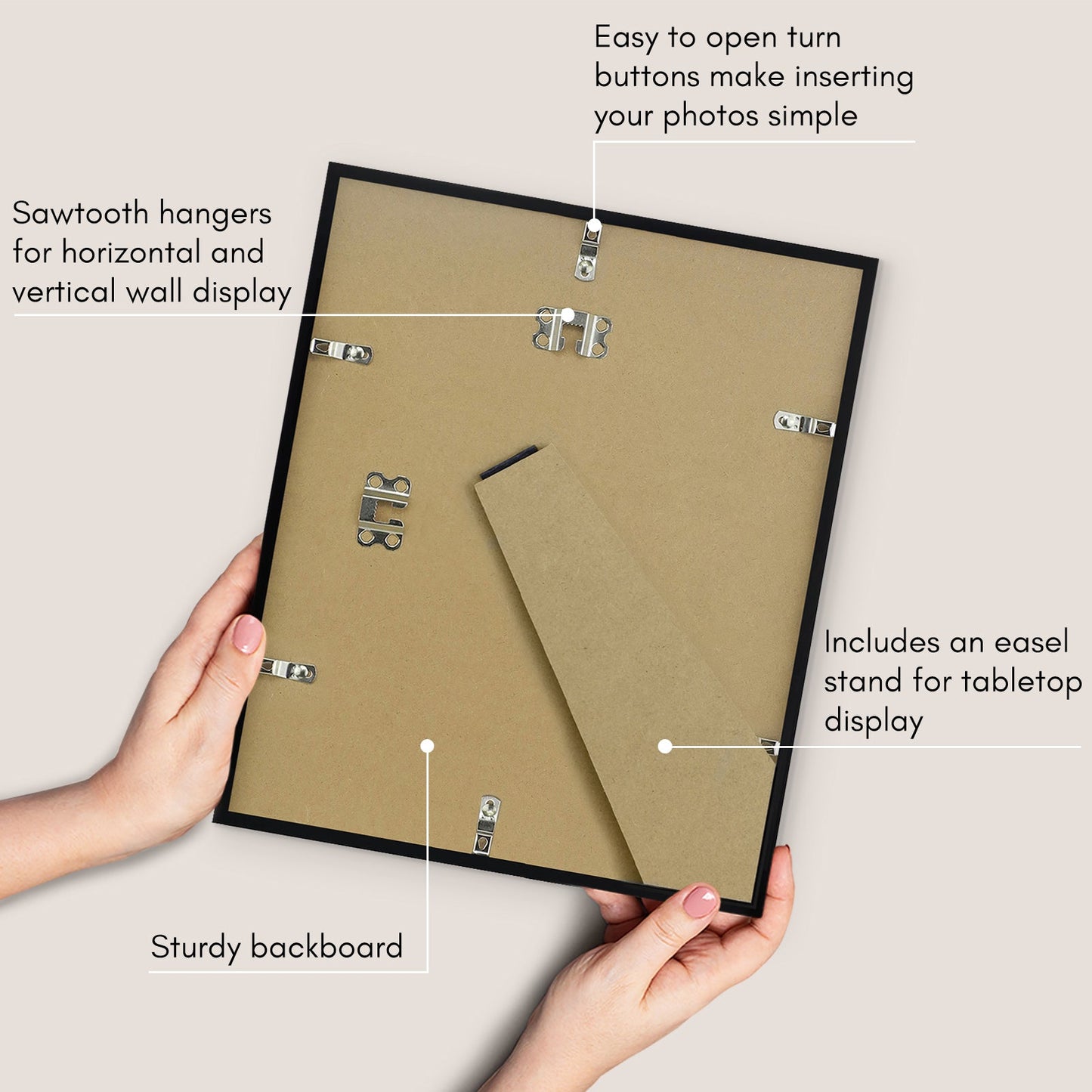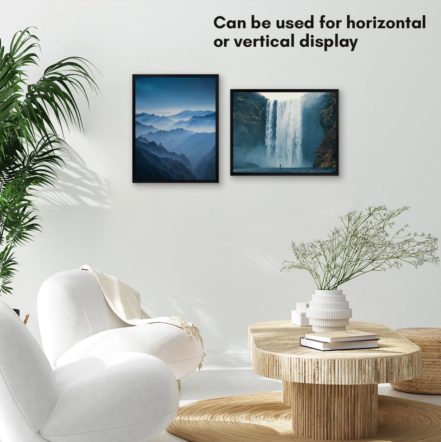 Just moved into my new place and I had so many posters and pictures to hang. I needed something that was affordable, wasn't too heavy and plastic not glass because I know myself and glass would have not been good for me. I was worried about having something that was an awkward size but found this quickly. It looks beautiful. It's lightweight and sturdy. I love that the hooks that secure the back slide and lock into place not like other picture frames that have those small put down metal piece that hurt your fingers to open. The plastic cover doesn't/hasn't scratched and looks so good on my wall.