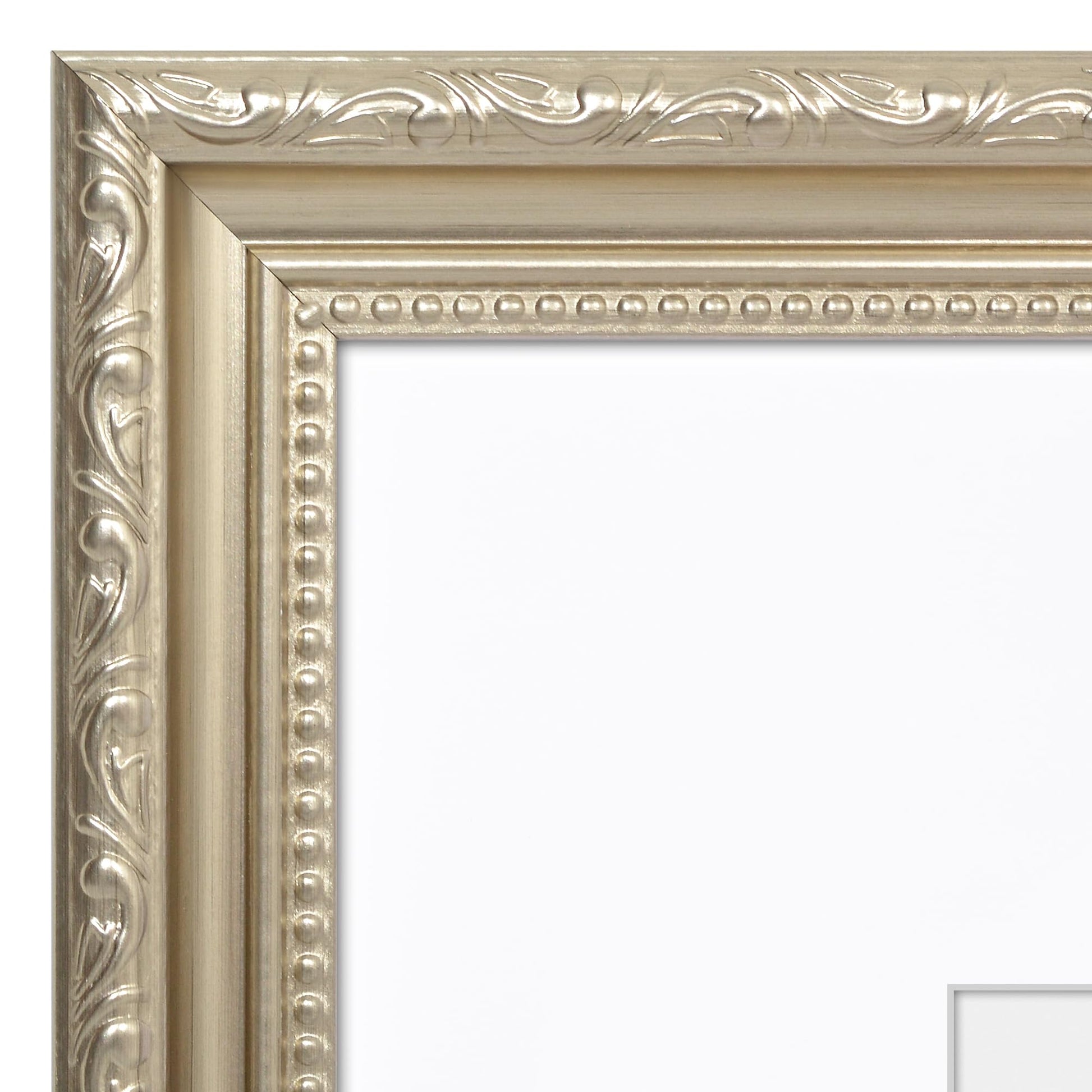 16x20 with 11x14 Mat | Ornate Vintage Frame | Silver | Modern - Premium Quality