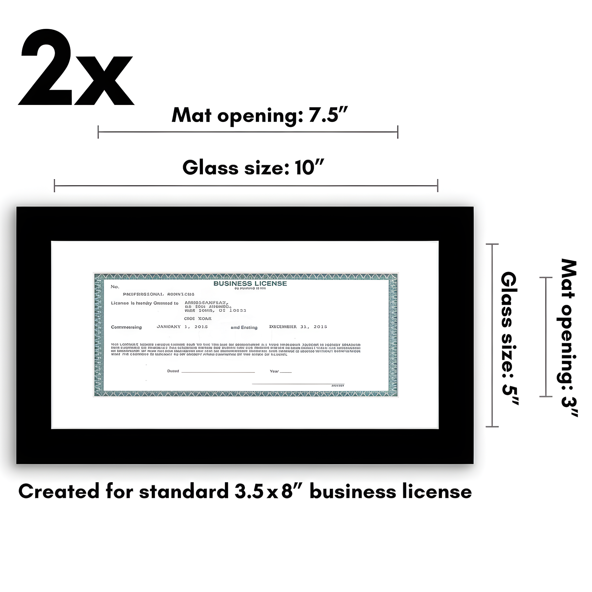 5x10 | License Frame | Set of 2 | Includes Mat | Shatter-Resistant Glass – Americanflat