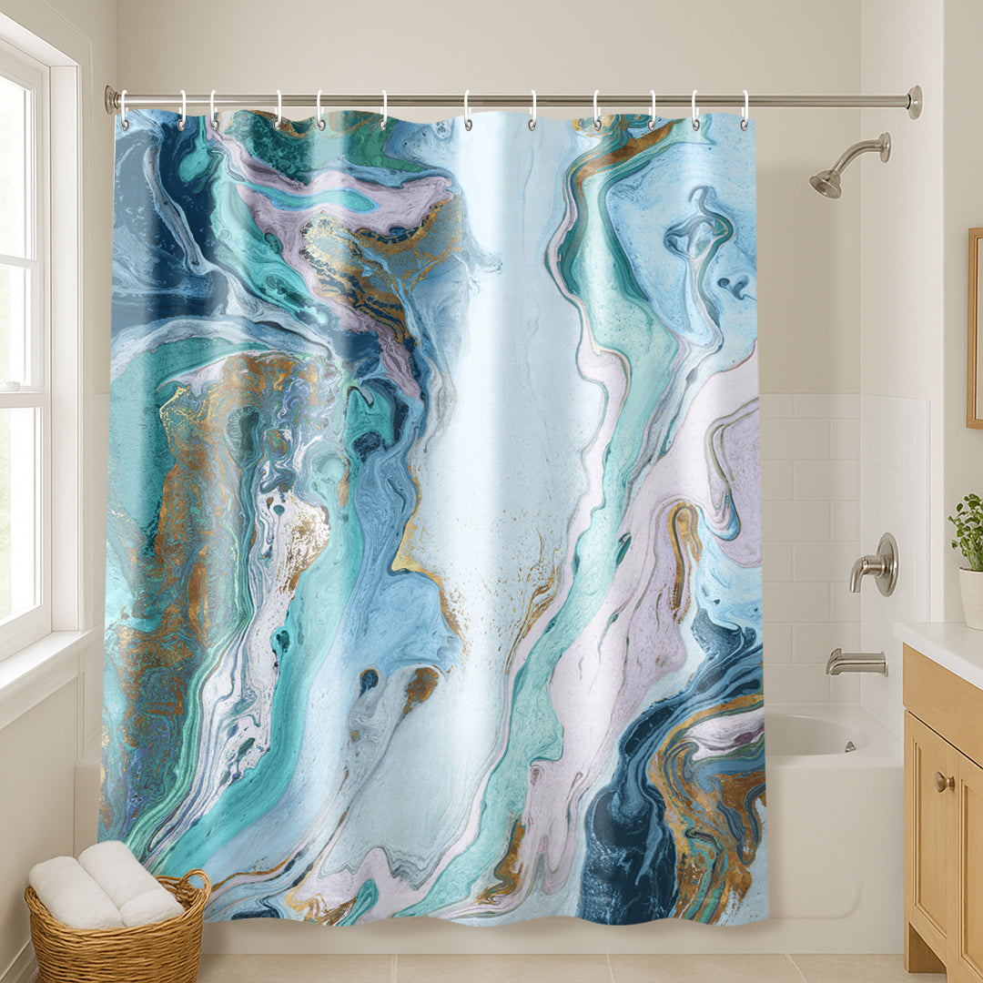 71x74 Blue Marble Shower Curtain with 12 Metal Grommets