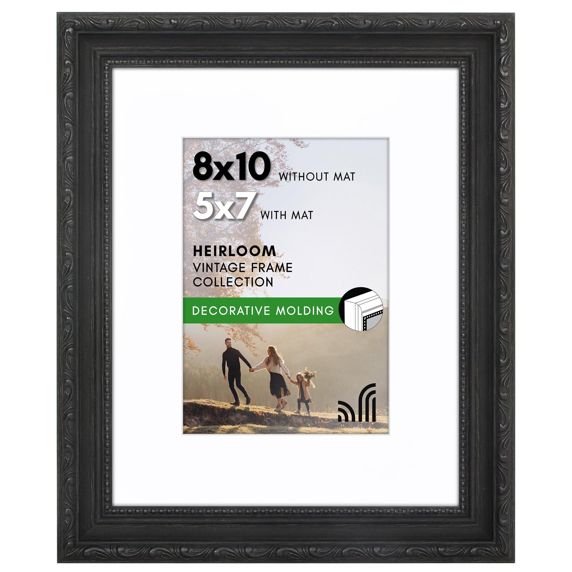 8x10 with 5x7 Mat | Ornate Vintage Frame | Black | Modern - Premium Quality
