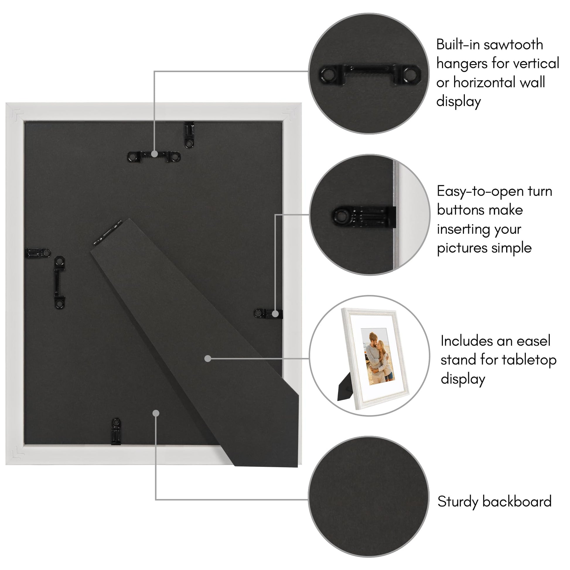 8x10 with 5x7 Mat | Vintage Frames | White Gold | Modern - Premium Quality