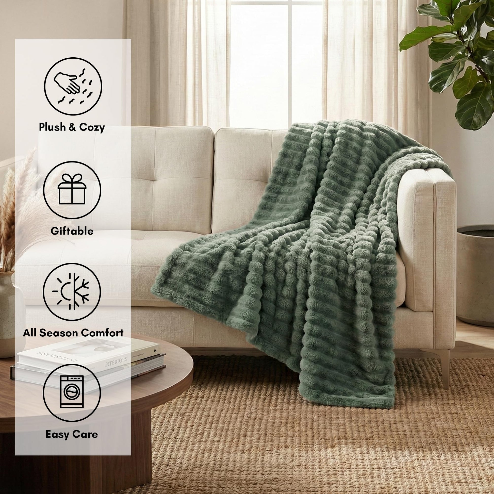 Americanflat 60x80 Faux Fur Throw Blanket - Soft and Breathable Throw Blanket for Couch, Bed, Chair - Green Faux Fur Blankets Perfect for Home, Bedroom, or Outdoor Use
