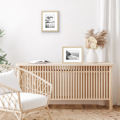 I am extremely impressed with the quality of the prints and frames. It was shipped UPS straight from the store in NY. The colors are amazing (can’t tell so much from the photos) and I’ve received lots of compliments. Hardware is already attached so you just need the nails.