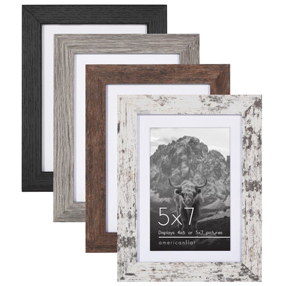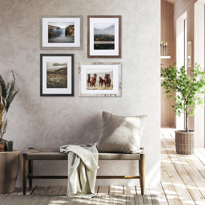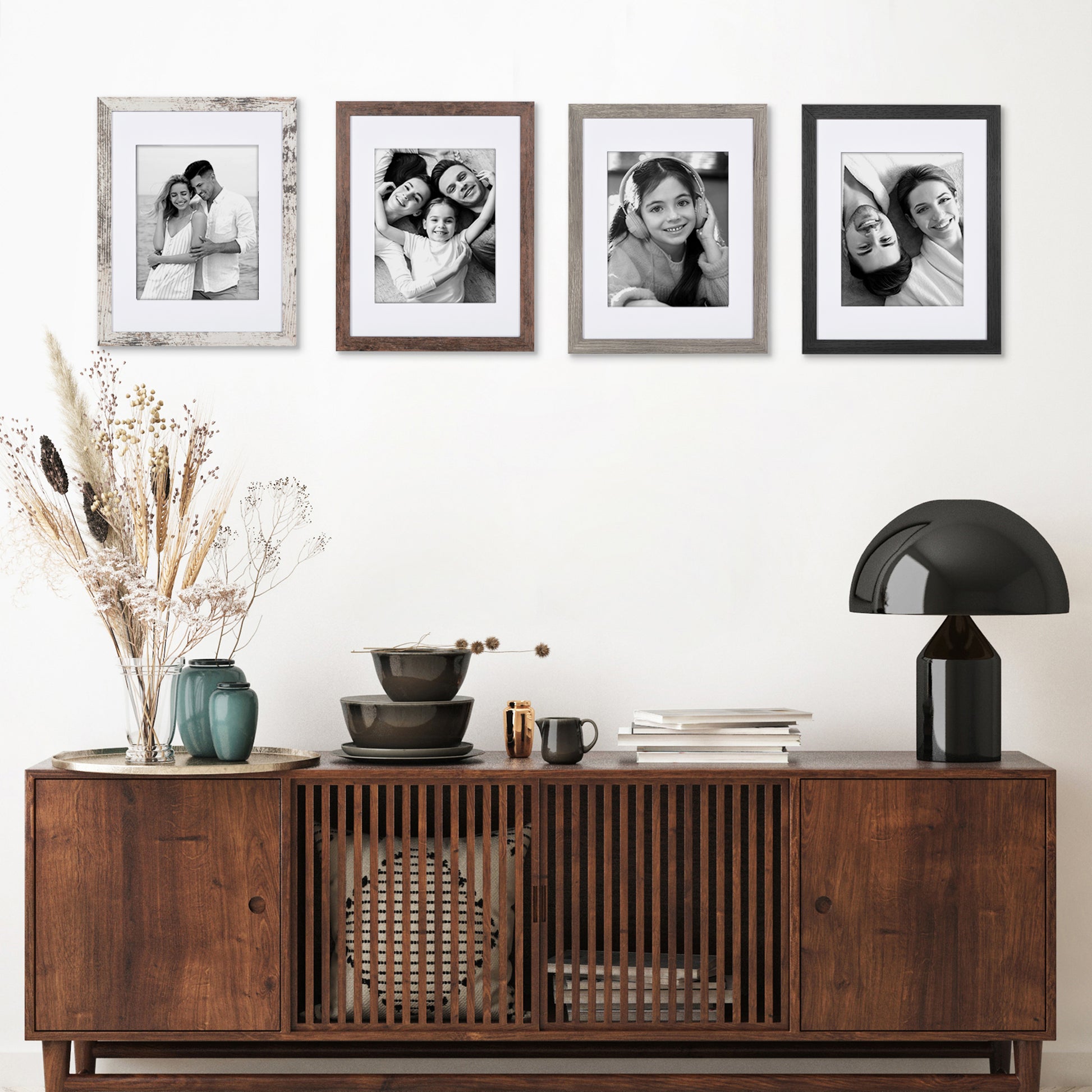 Collage Picture Frame | Set of 4 | Shatter-Resistant | With Mat | Multi-Wood Finish - Americanflat