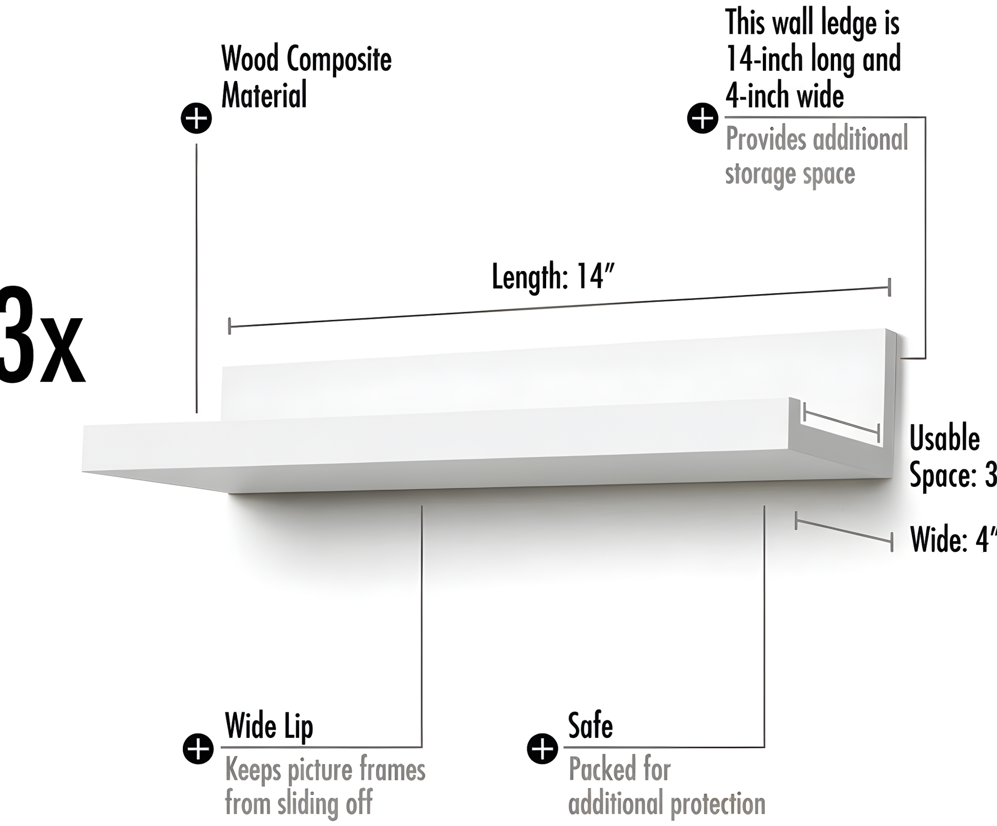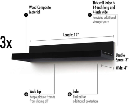 14-Inch | Black | Floating Shelves Set of 3 | Lipped Display - Americanflat