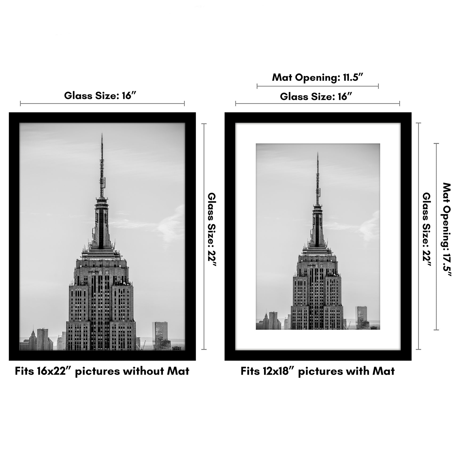 Black Picture Frame With Mat | Plexiglass Cover | Wall Display | Modern Design - Americanflat