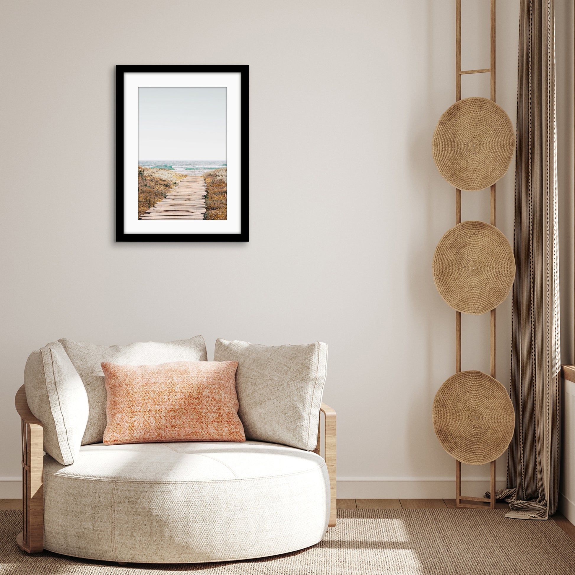 I am extremely impressed with the quality of the prints and frames. It was shipped with UPS straight from the store in NY. The colors are amazing (can’t tell so much from the photos) and I’ve received lots of compliments. Hardware is already attached so you just need the nails.
