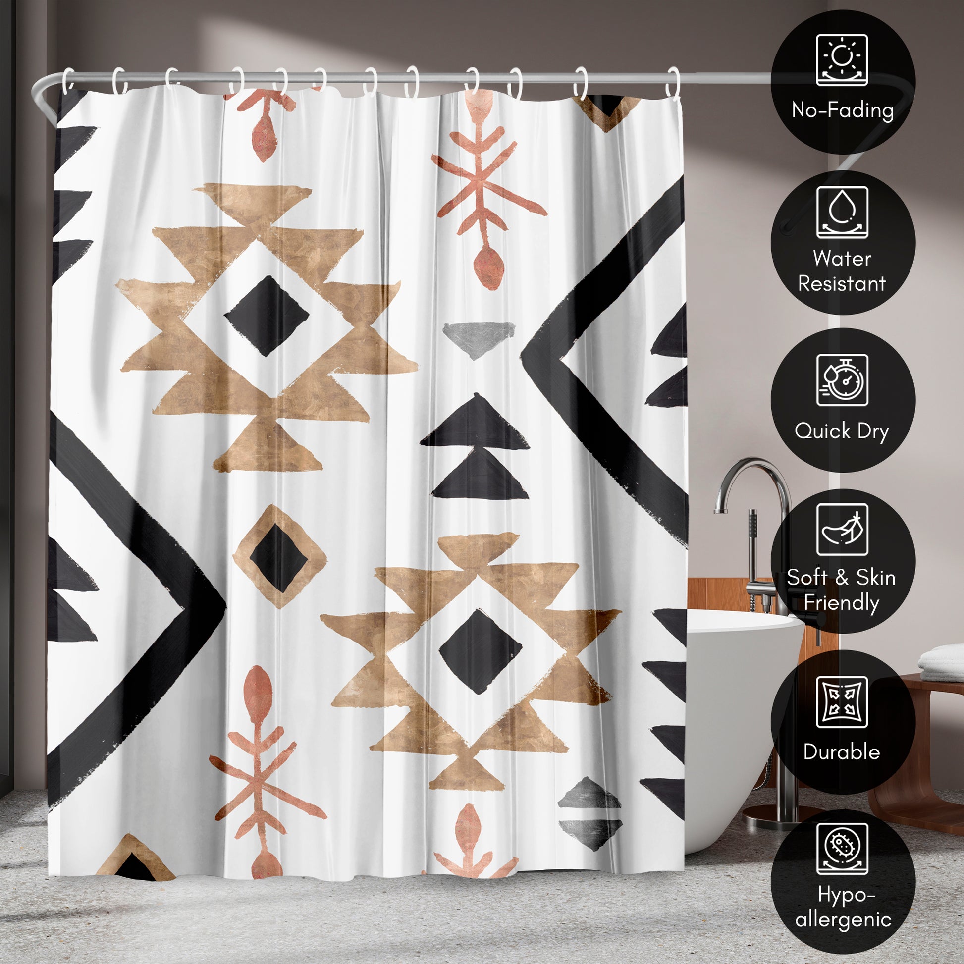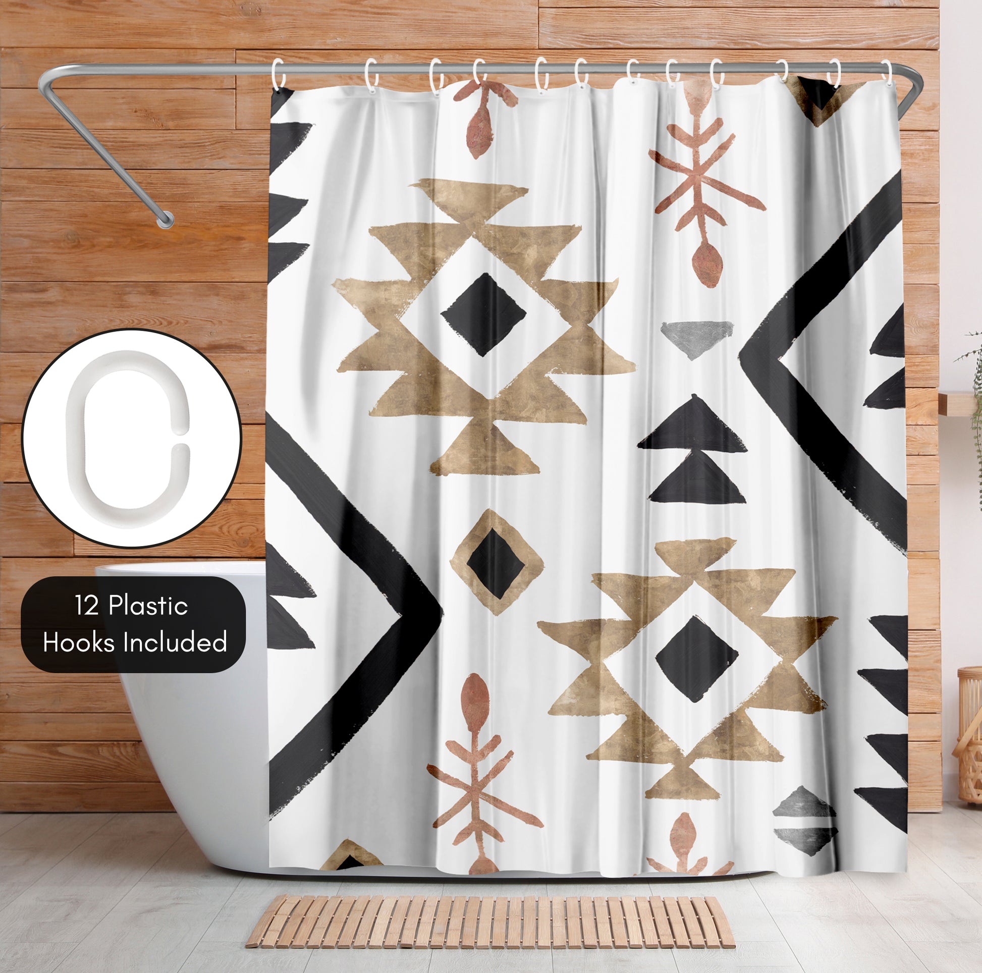 71x74 Boho Shower Curtain with 12 Metal Grommets | Geometric Design