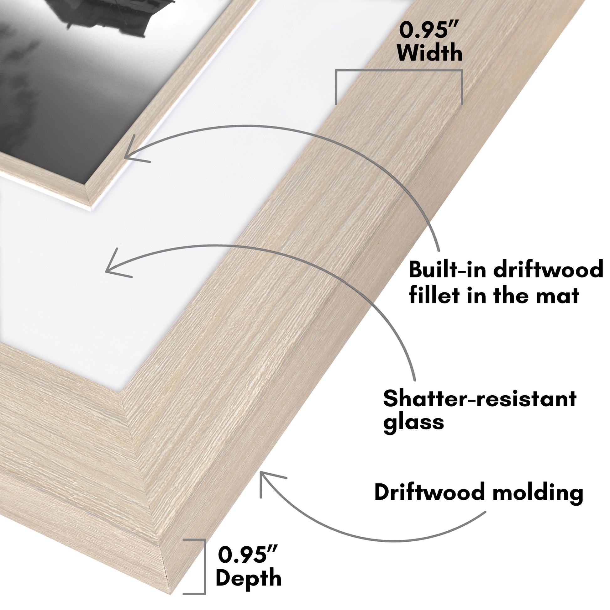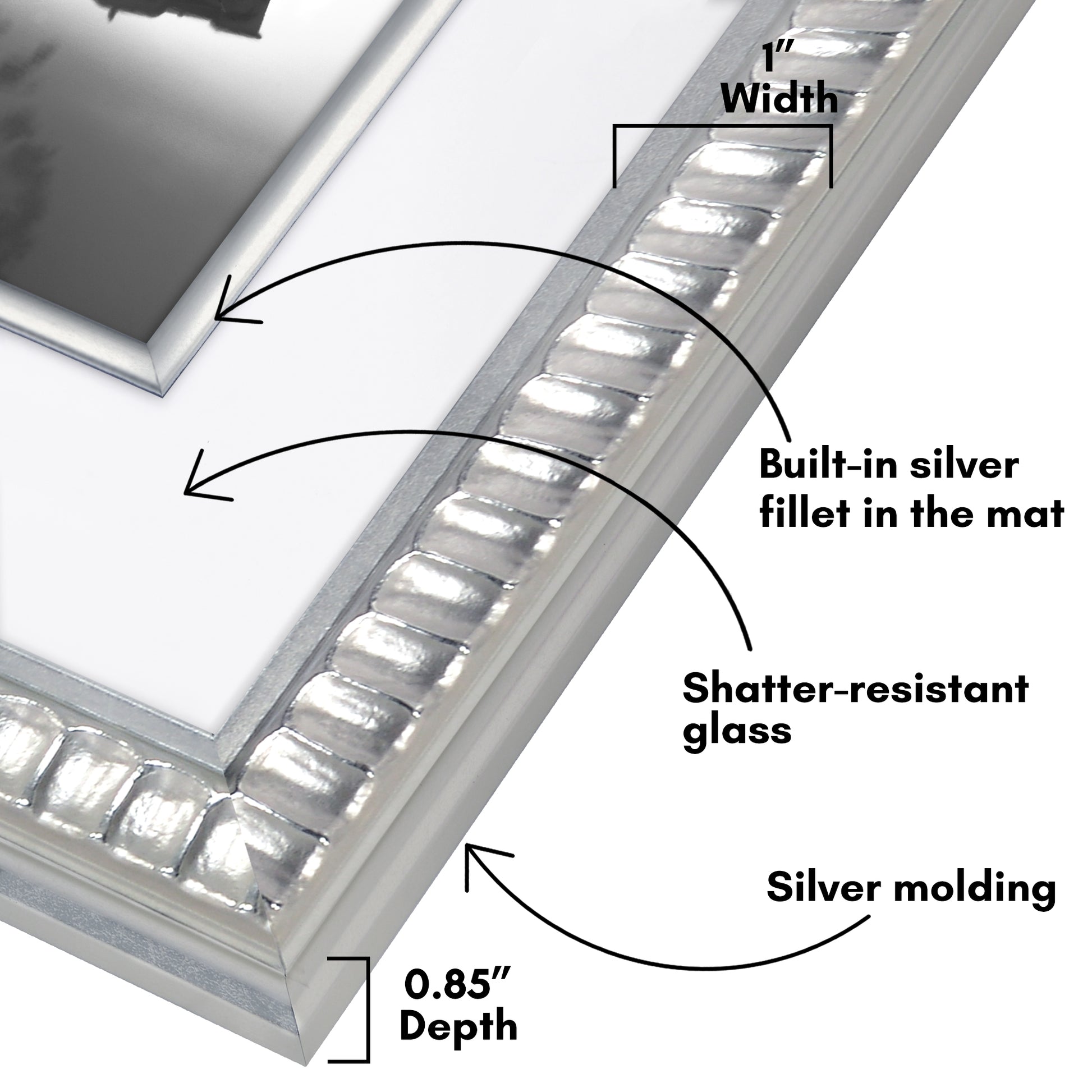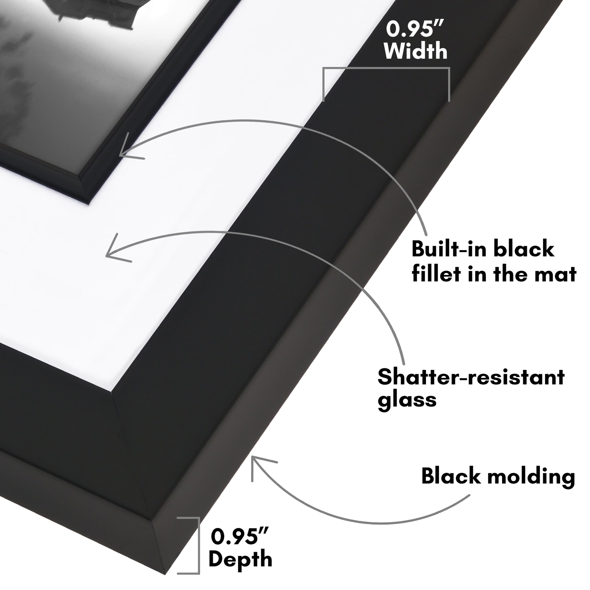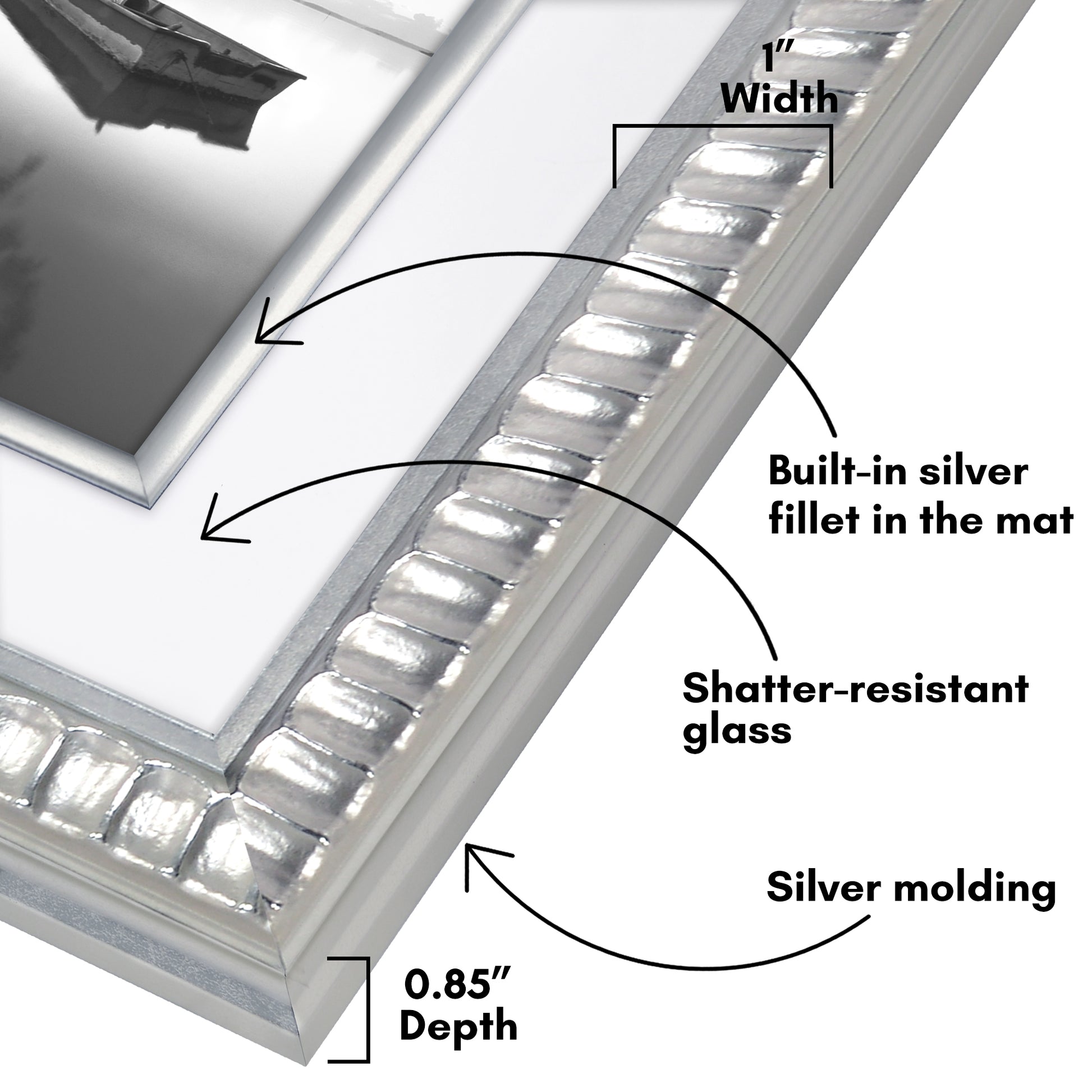 Veranda Picture Frame | Fillet Accent | Mat Included | Shatter-Resistant - Americanflat