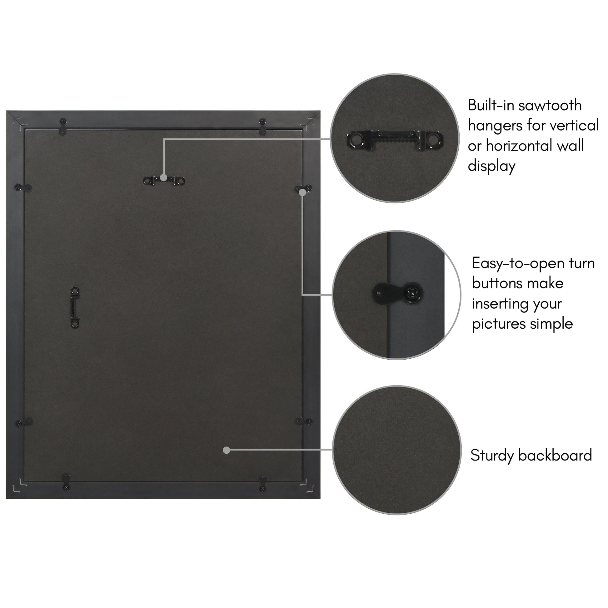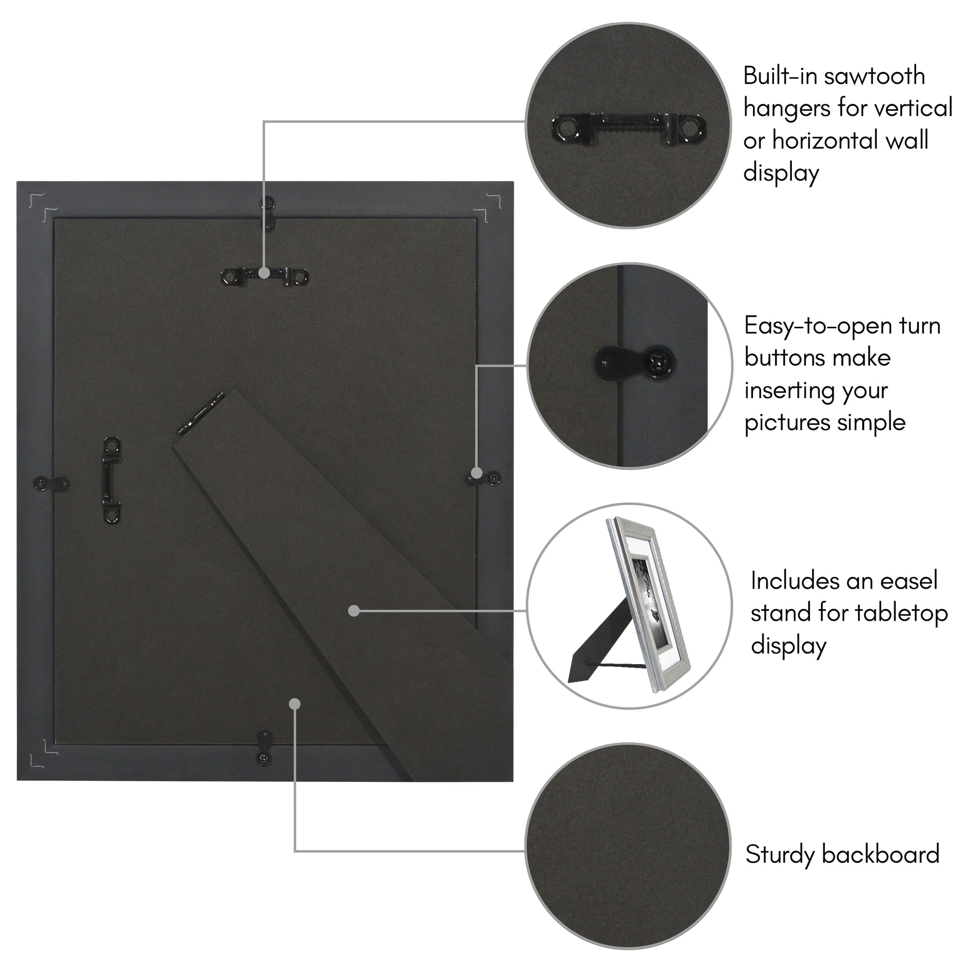 So easy to display artwork, pictures, notes, etc. just open the front display door, insert item into holding bands, and shut door. Love that you can easily change the displayed item as needed.
