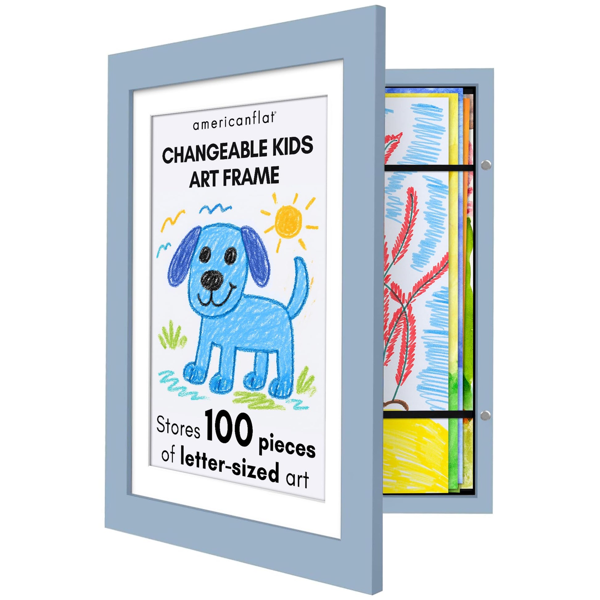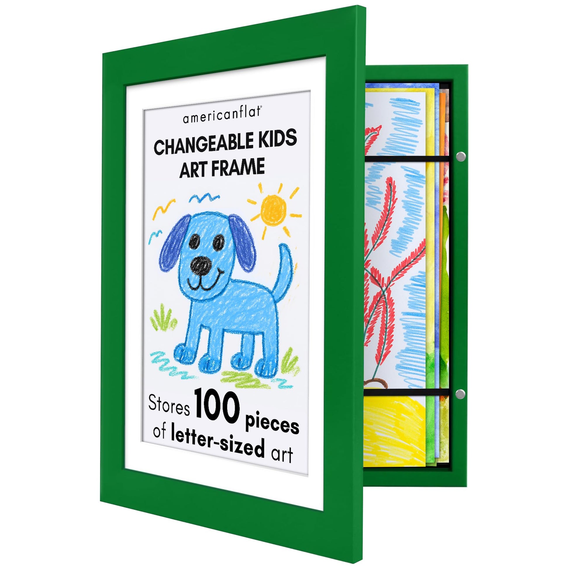 So easy to display artwork, pictures, notes, etc. just open the front display door, insert item into holding bands, and shut door. Love that you can easily change the displayed item as needed.