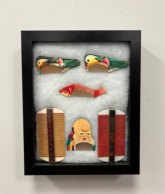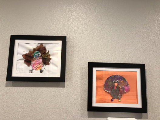So easy to display artwork, pictures, notes, etc. just open the front display door, insert item into holding bands, and shut door. Love that you can easily change the displayed item as needed.