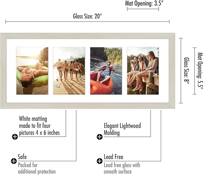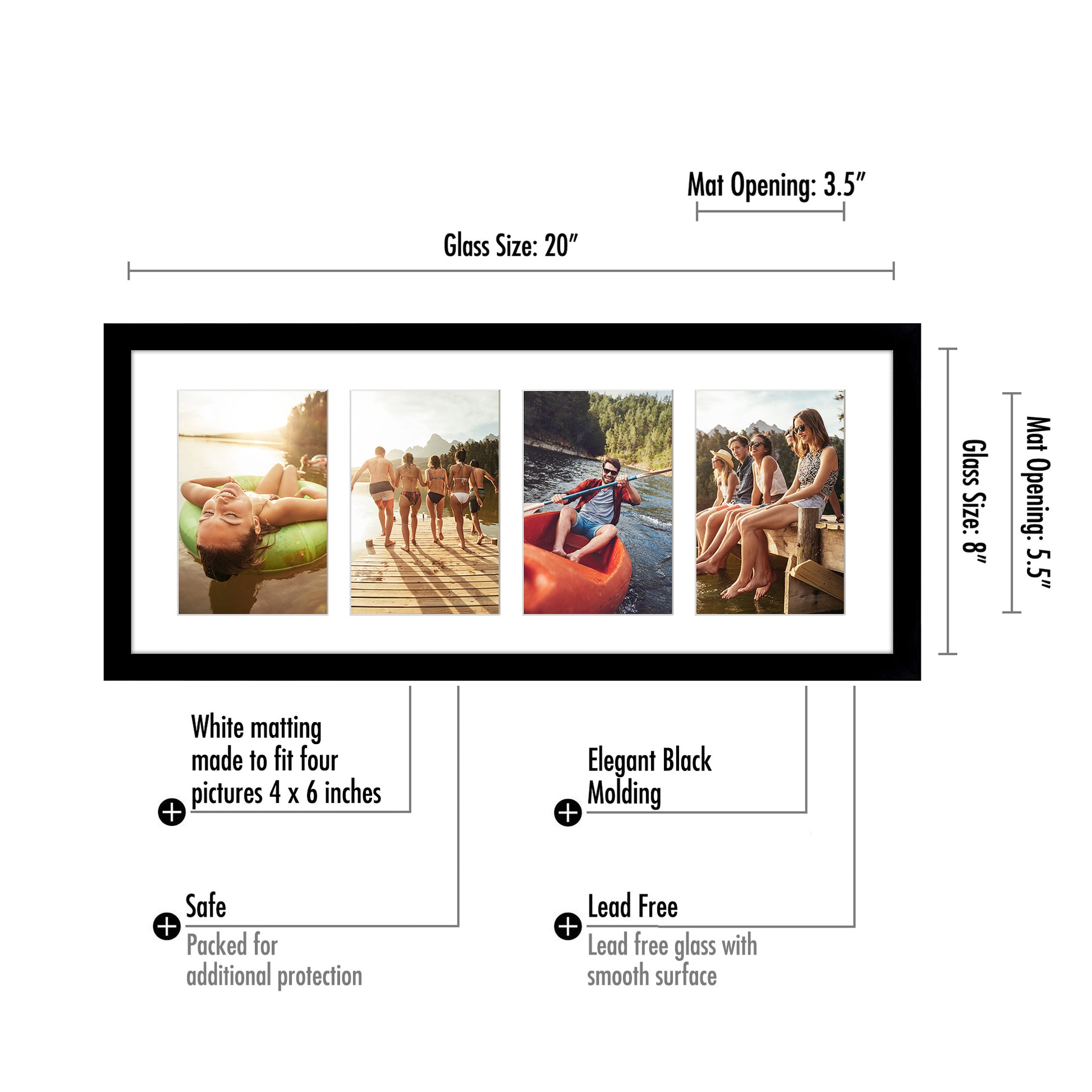 4-Photo Collage Picture Frame for 4x6 or 4x4 | Choose Size and Color
