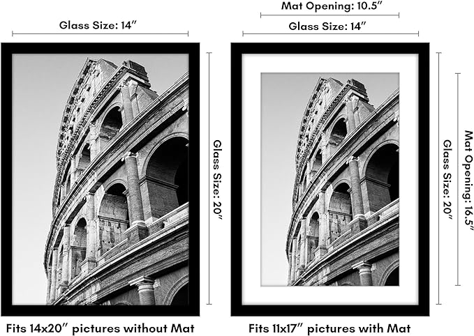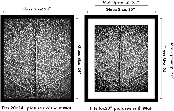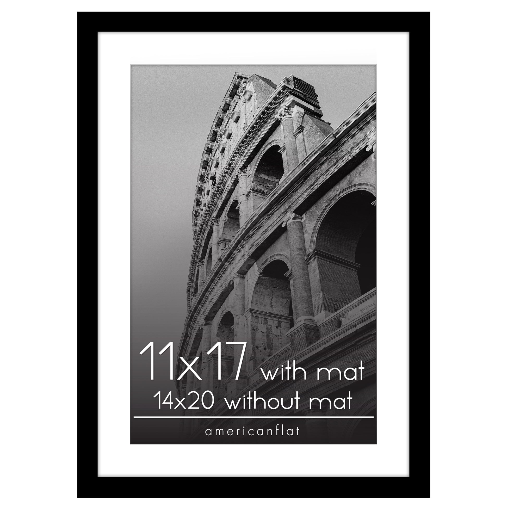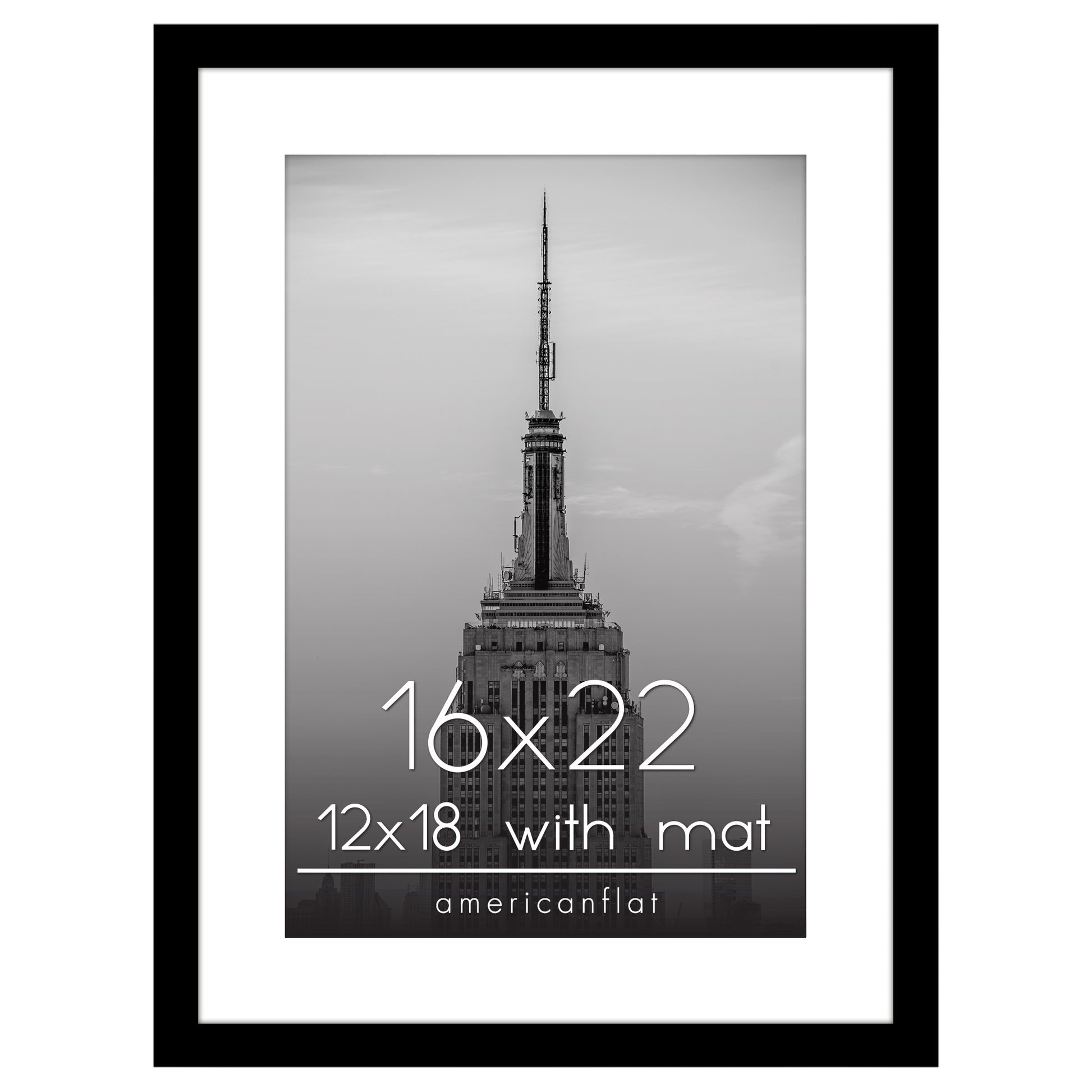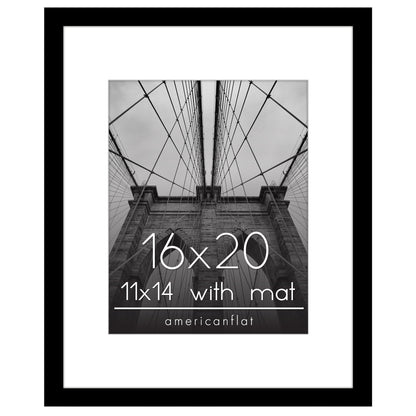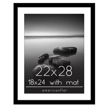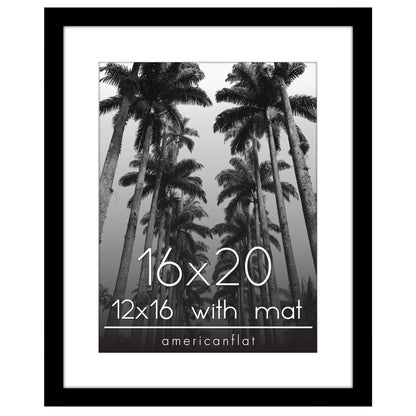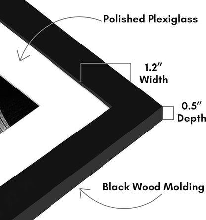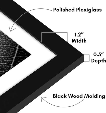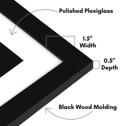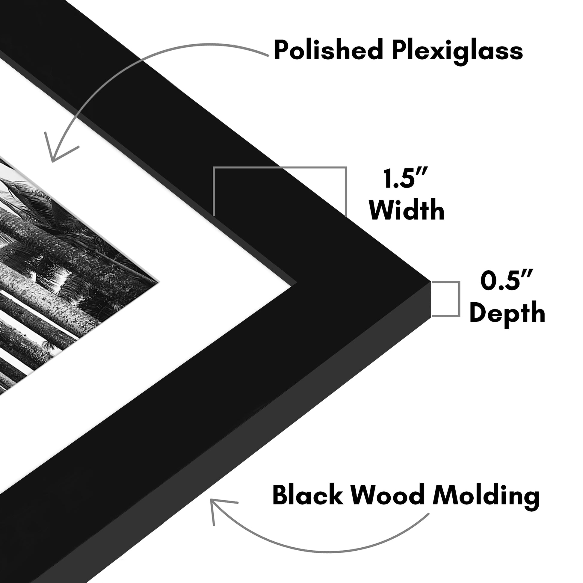 Black Poster Frame with Mat | Plexiglass Cover | Choose Size